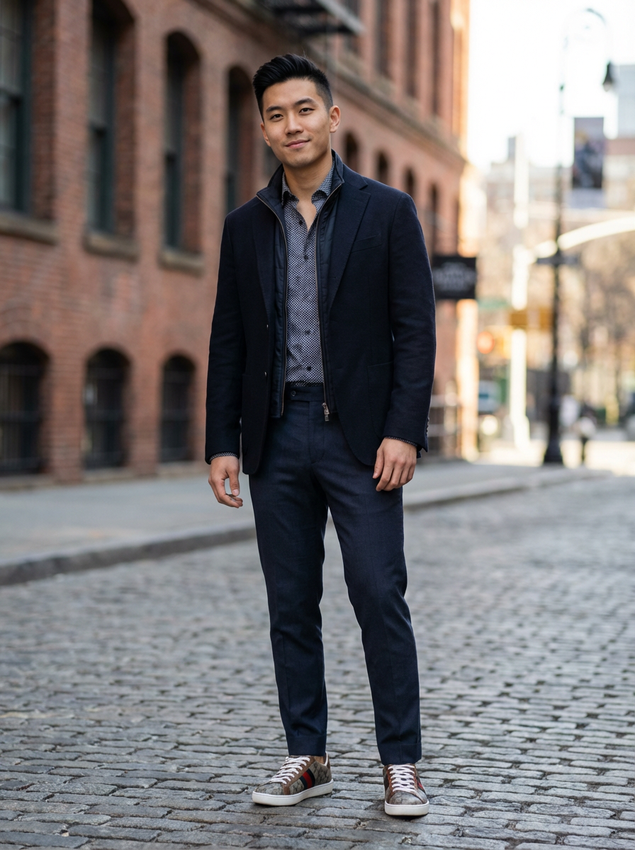 Full body fashion portrait of model. Full fashion look, confident pose. Professional fashion photography.