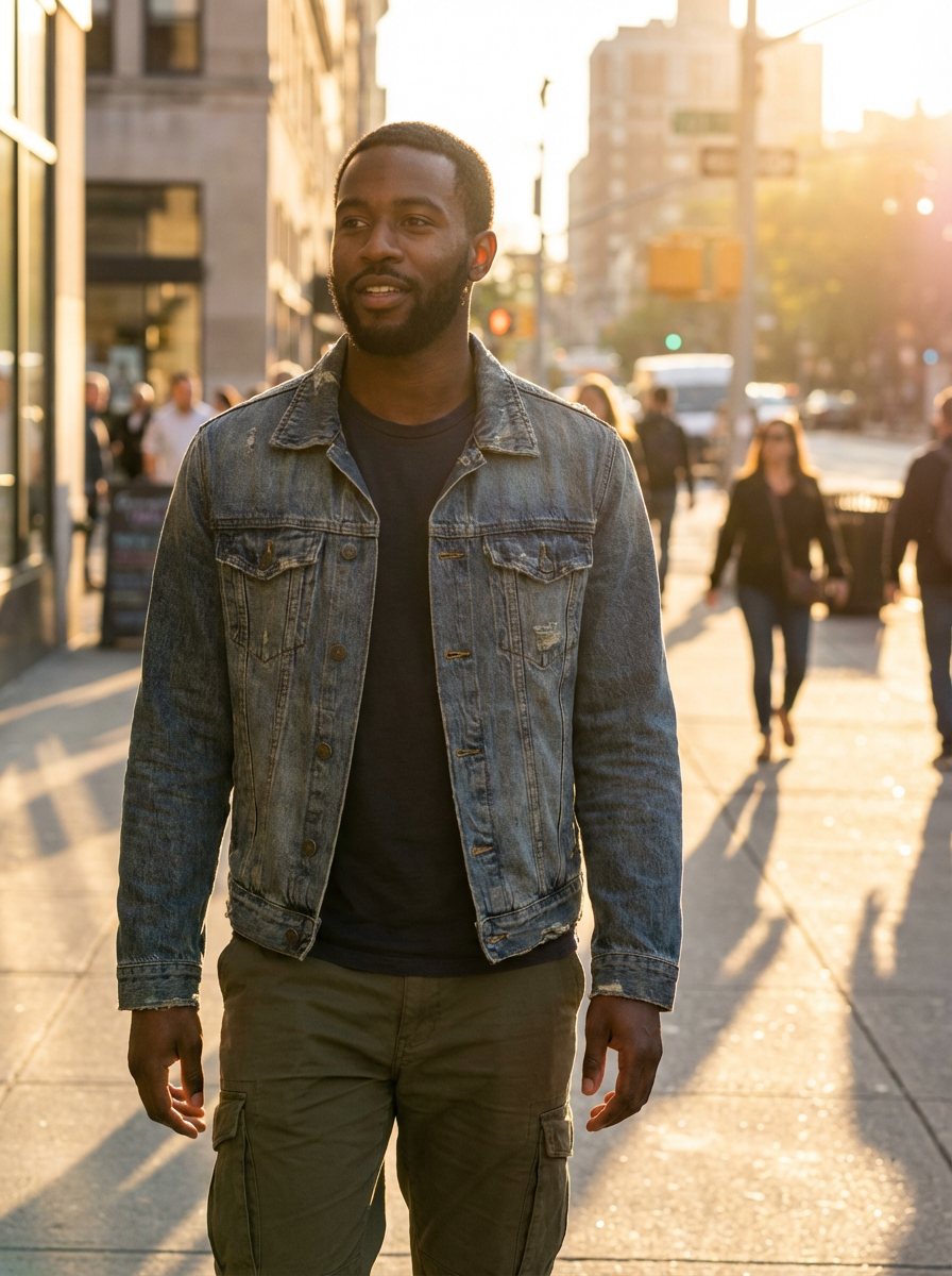 Full body golden hour candid of model. Complete candid moment in sunset. Golden hour documentary style.