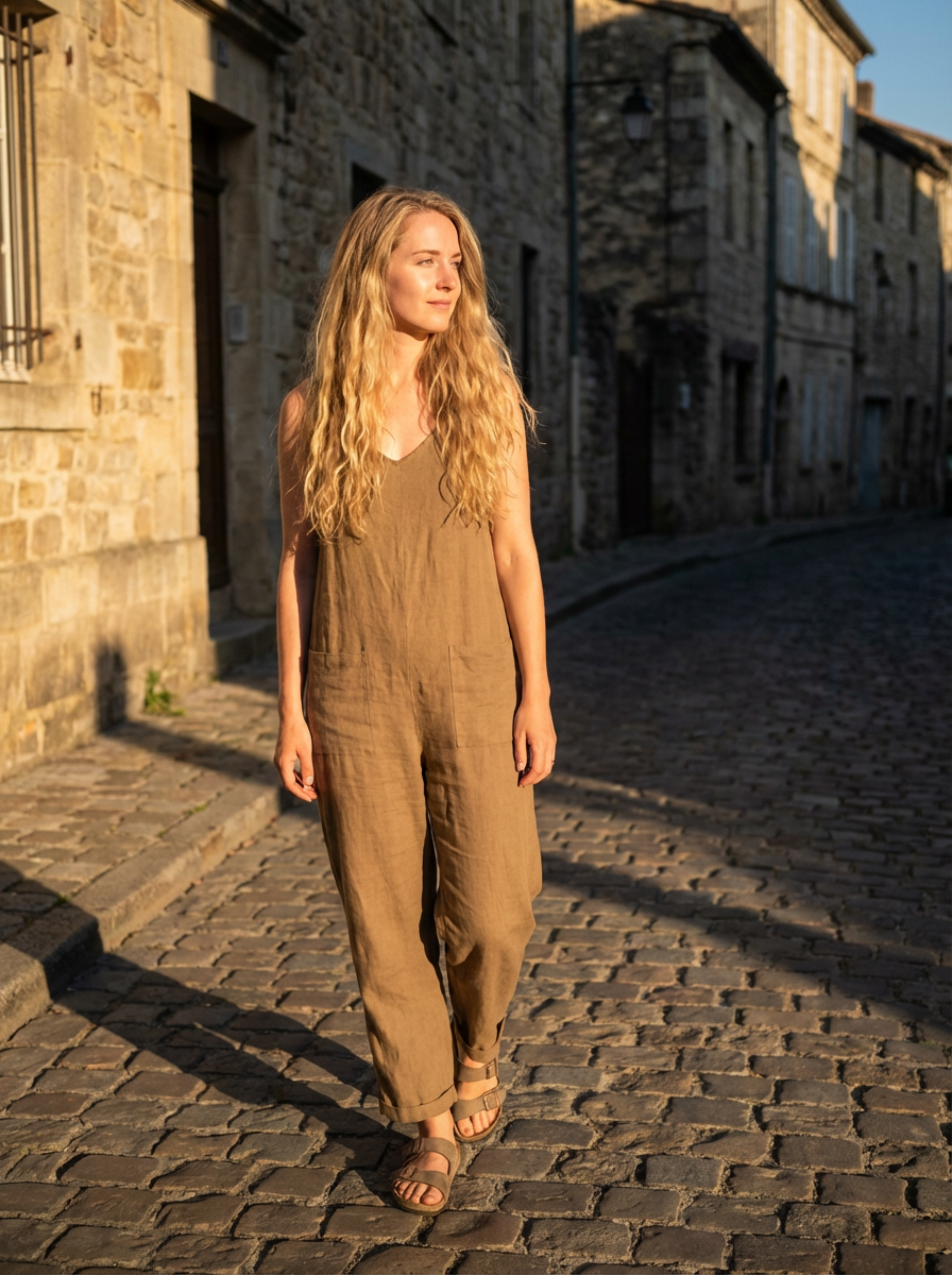 Full body golden hour candid of model. Alluring full body pose in warm light . Golden hour documentary style.
