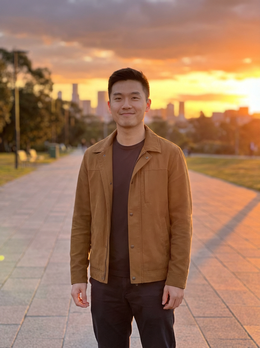 Full body golden hour portrait of model. Complete look in sunset glow. Golden hour photography.