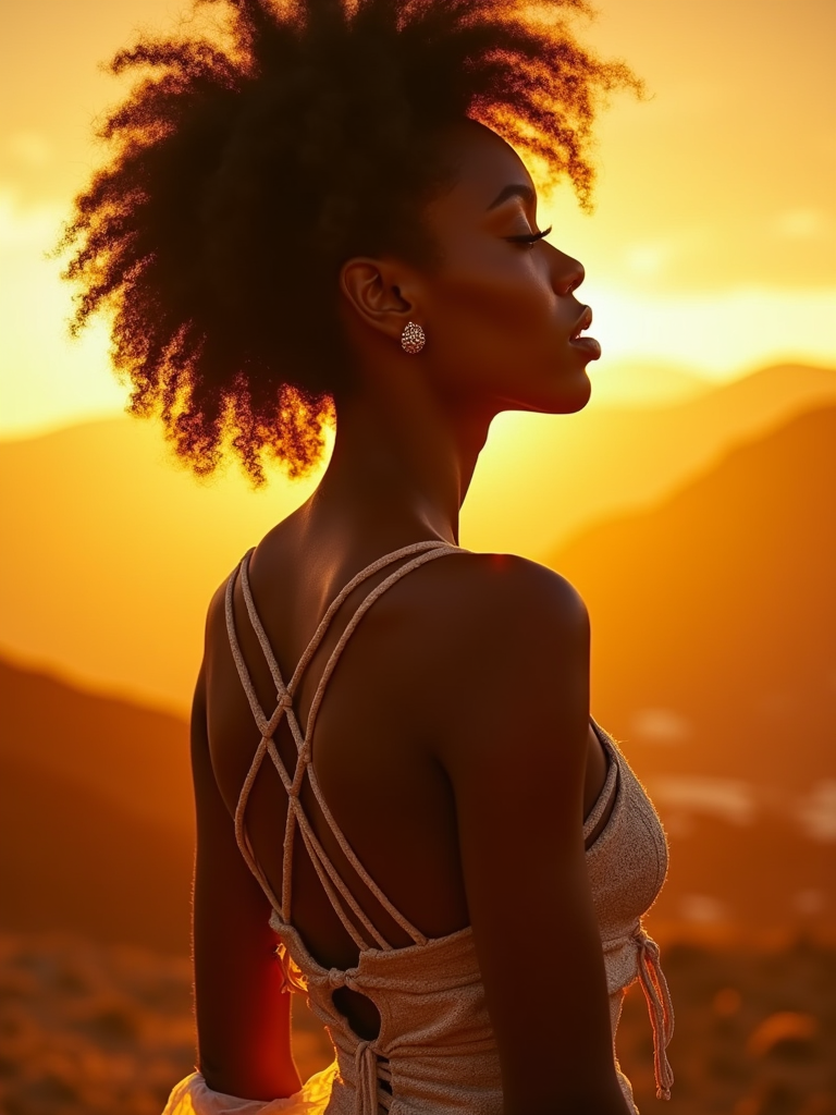Full body golden hour portrait of model. Flowing outfit in warm light, sensual pose . Golden hour photography.