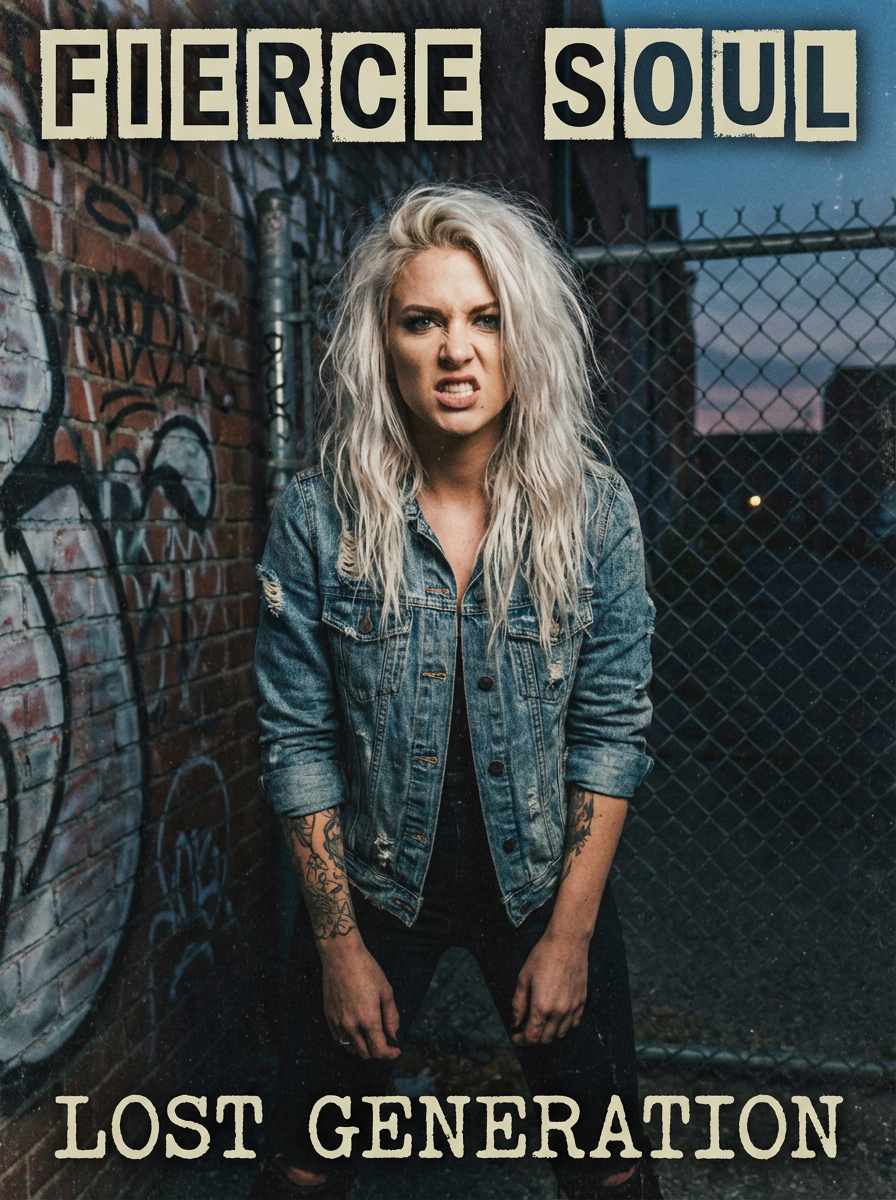 full body photo of dramatic close-up of model for a 1990s album cover, intense expression. Looking fierce with platinum blonde hair and tattoos .