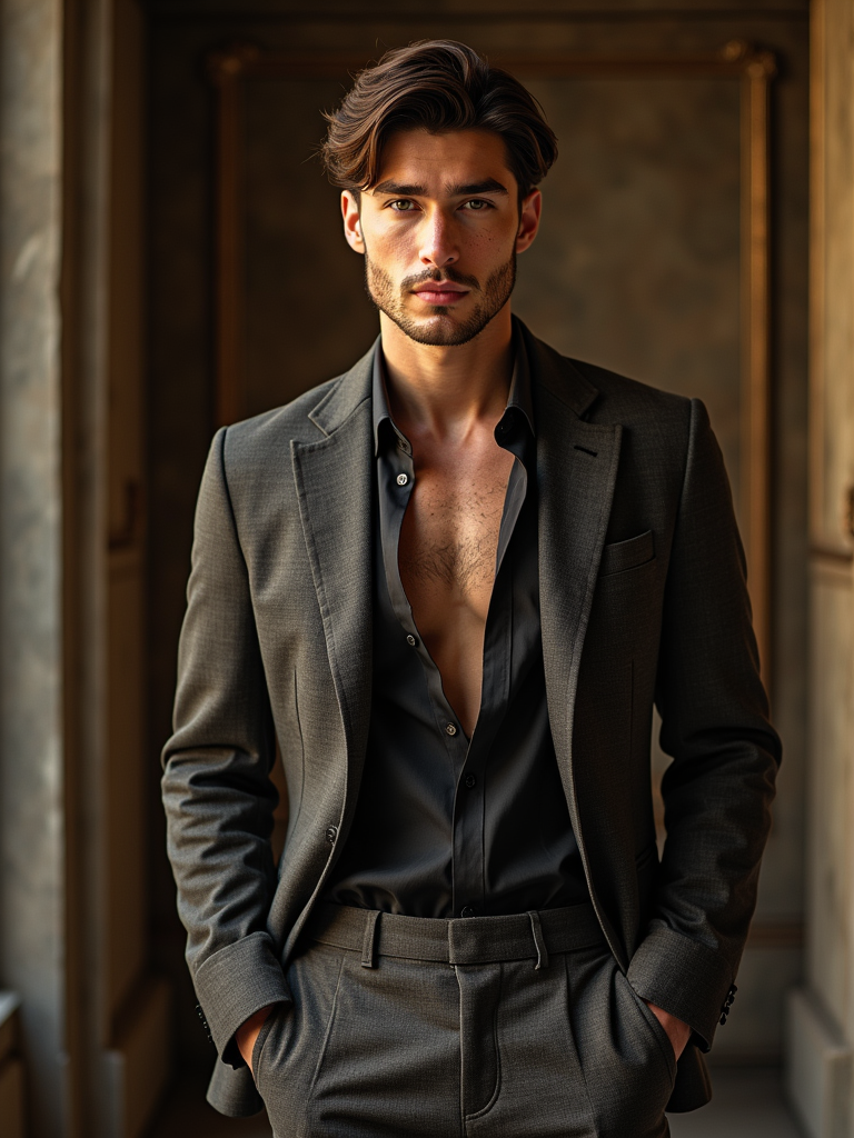 full body photo of insanely beautiful model with freckles in a luxury brand campaign. Wearing premium fashion, elegant stance. Upscale environment, luxury photography.