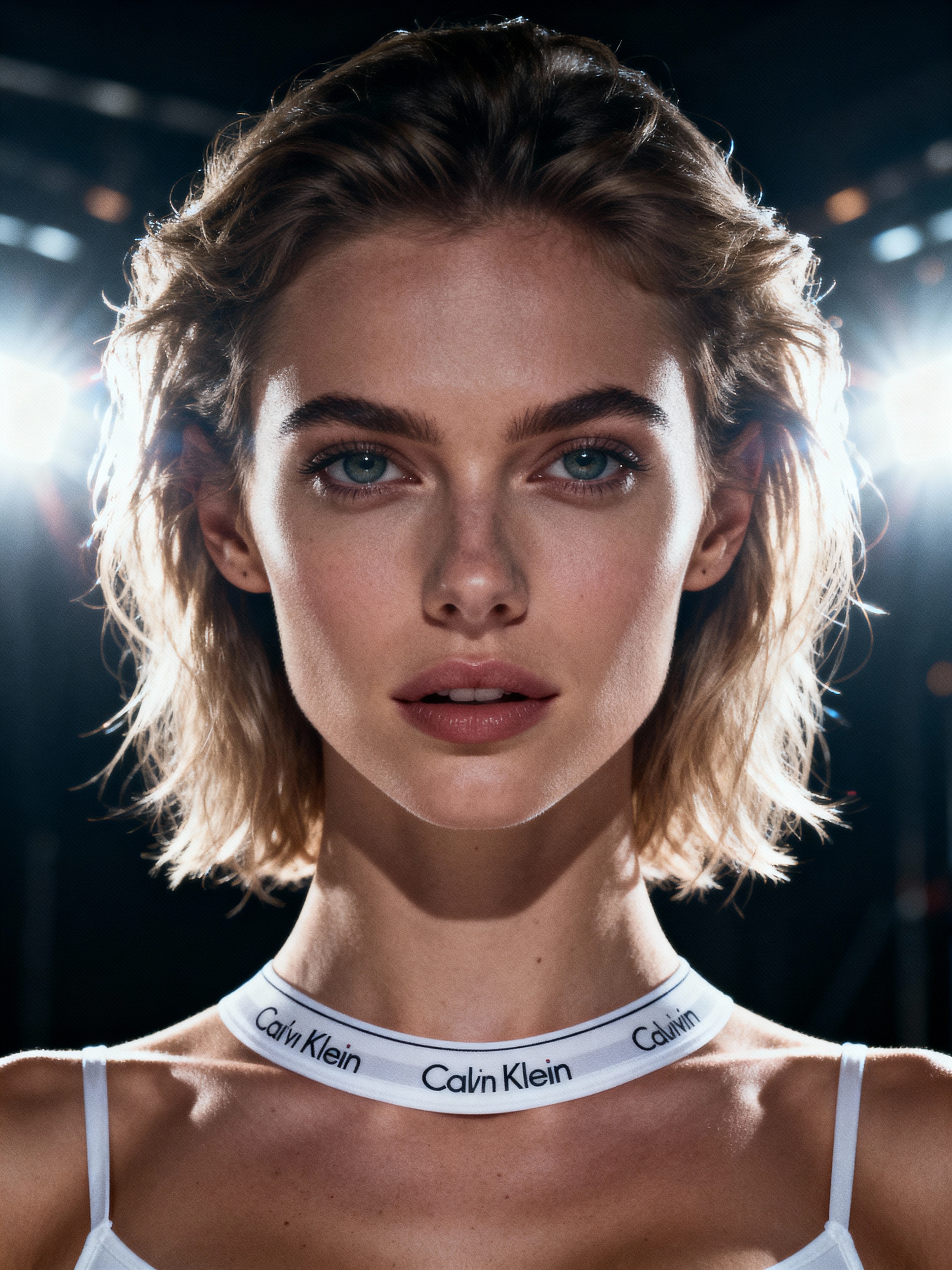 full body photo of model wearing seductive Calvin Klein white underwear