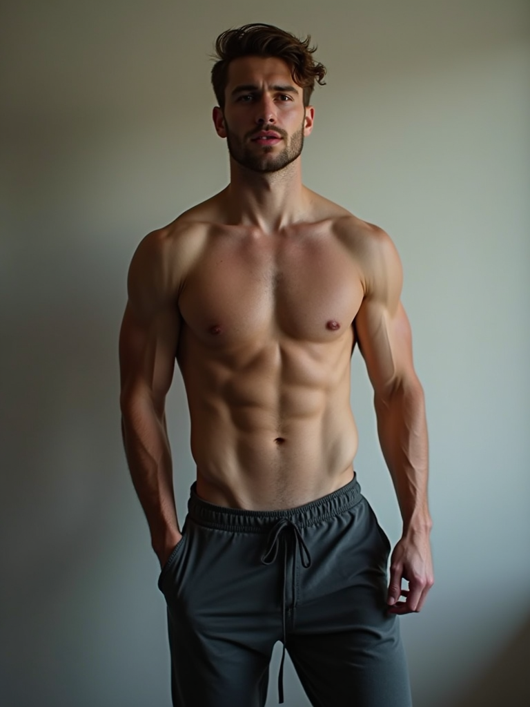 Full body portrait of model as a contemporary art piece. Modern style, creative framing. Gallery quality artwork.