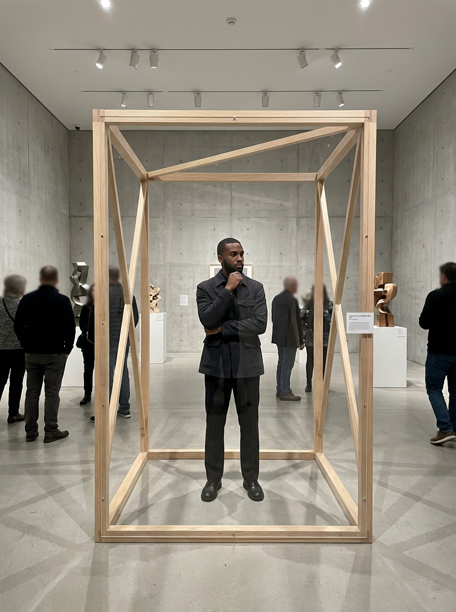 Full body portrait of model as a contemporary art piece. Modern style, creative framing. Gallery quality artwork.