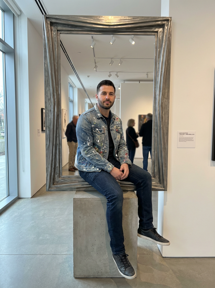Full body portrait of model as a contemporary art piece. Modern style, creative framing. Gallery quality artwork.