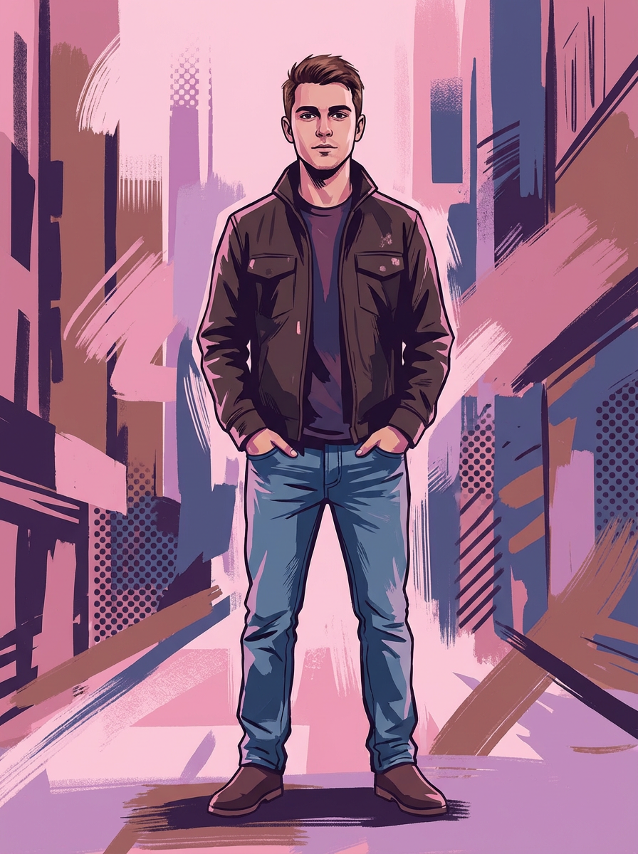 Full body portrait of model as a digital illustration. Graphic style, creative interpretation. Digital art aesthetic.