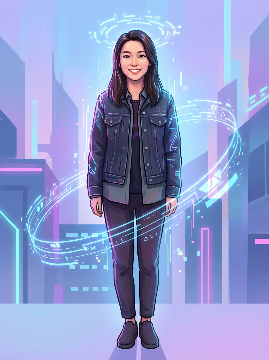 Full body portrait of model as a cartoon. Digital effects, artistic rendering . Professional digital art.