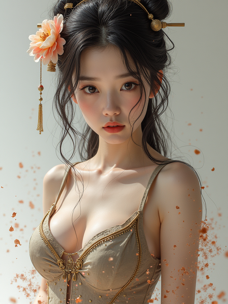 Full body portrait of model as a contemporary art piece. Abstract elements, artistic composition . Gallery quality artwork.