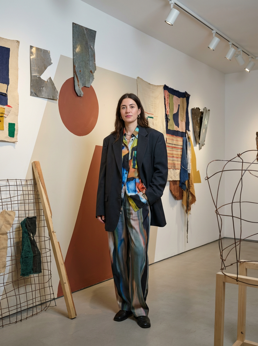 Full body portrait of model as a contemporary art piece. Abstract elements, artistic composition . Gallery quality artwork.