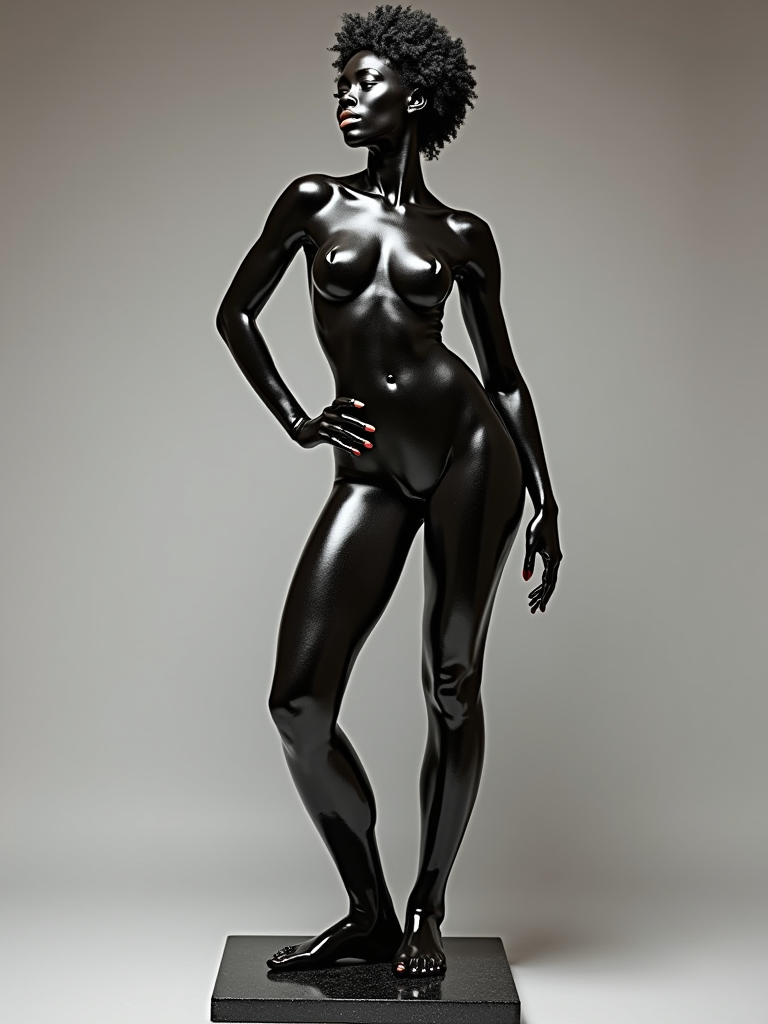 Full body portrait of model as a contemporary sculpture. Modern materials, artistic form . Gallery installation style.