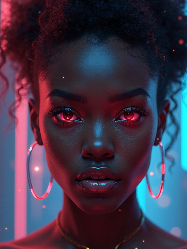 Full body portrait of model as a digital art piece. Futuristic style, glowing elements . Modern digital art style.