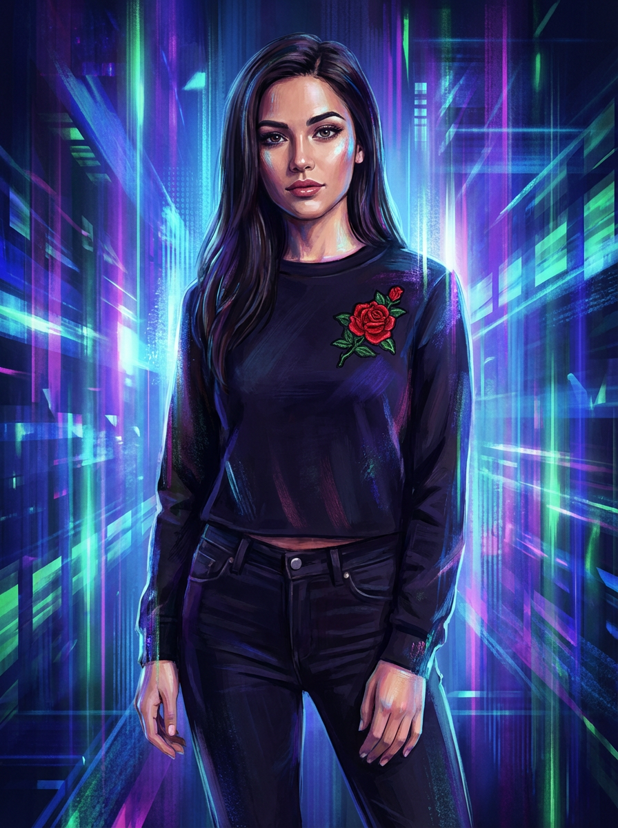 Full body portrait of model as a digital artwork. Digital effects, artistic rendering . Professional digital art.