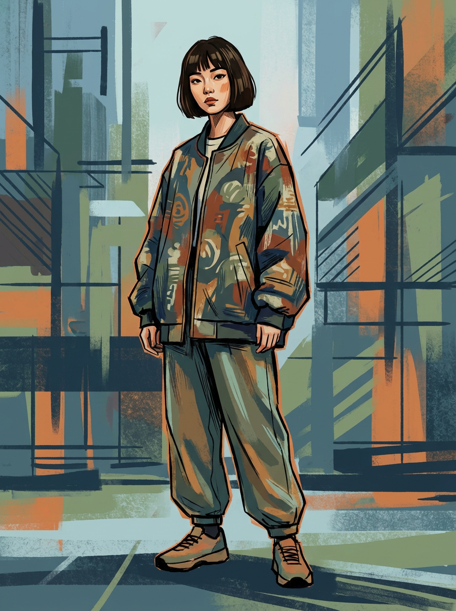 Full body portrait of model as a digital illustration. Stylized features, artistic rendering . Digital art aesthetic.