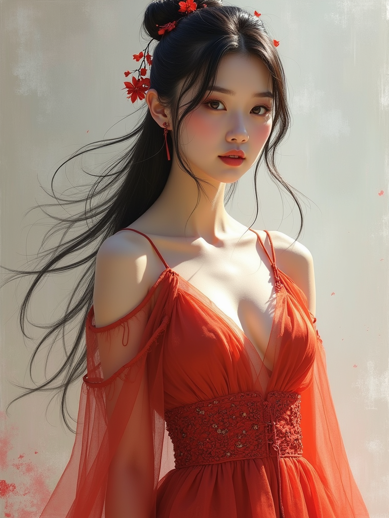 Full body portrait of model as a digital painting. Digital brushstrokes, artistic effects . Digital art masterpiece.
