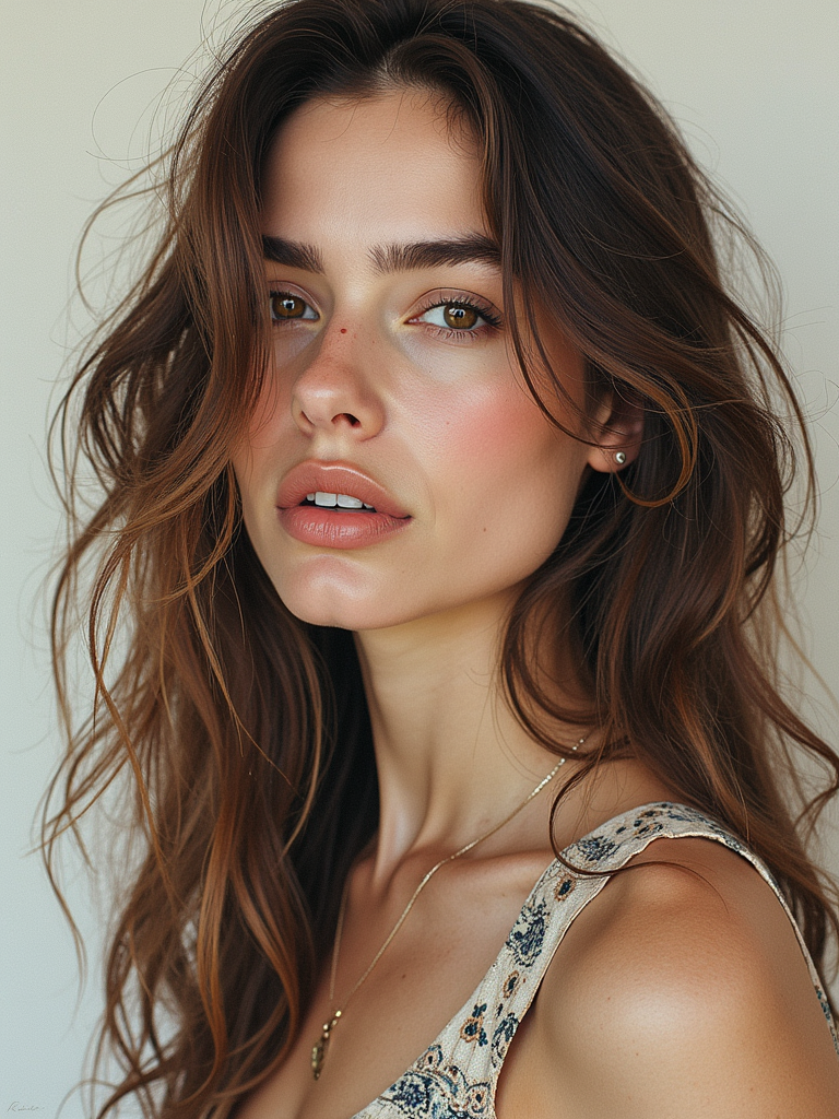 Full body portrait of model as a mixed media artwork. Combined techniques, artistic depth . Gallery quality art.