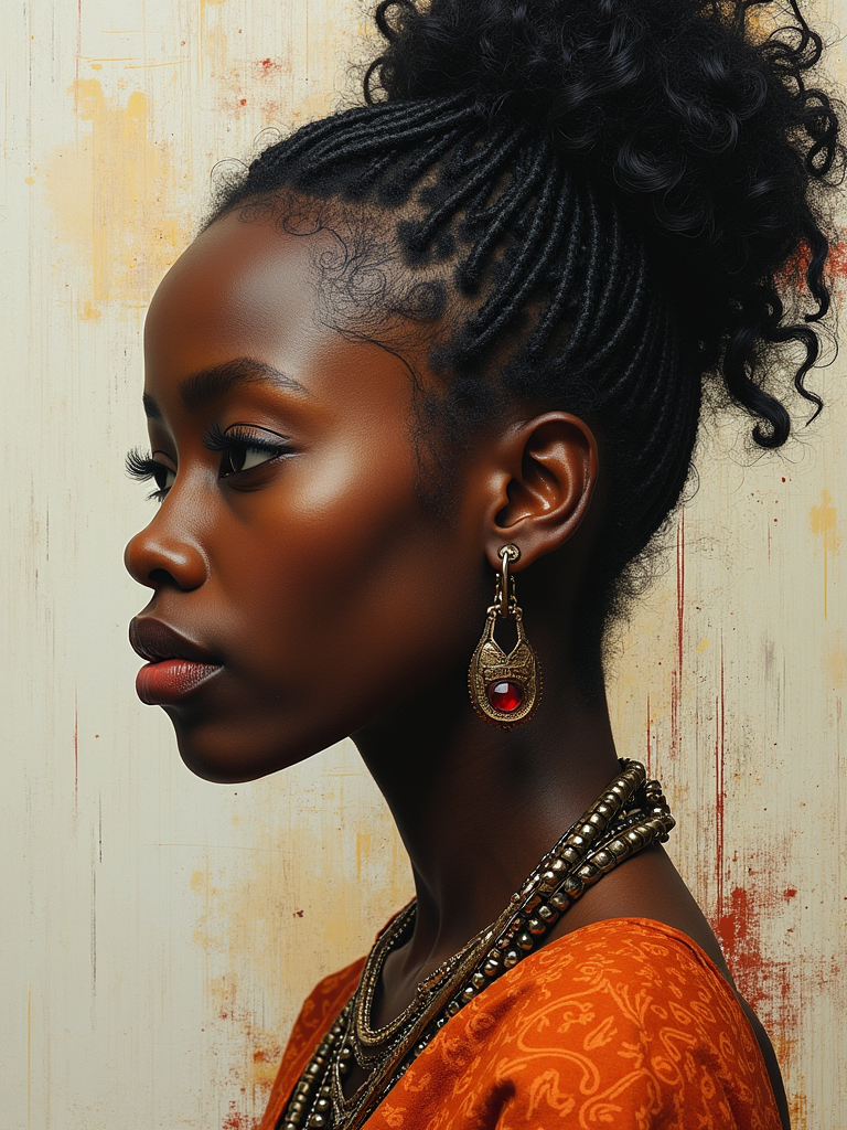 Full body portrait of model as a mixed media artwork. Combined techniques, artistic depth . Gallery quality art.