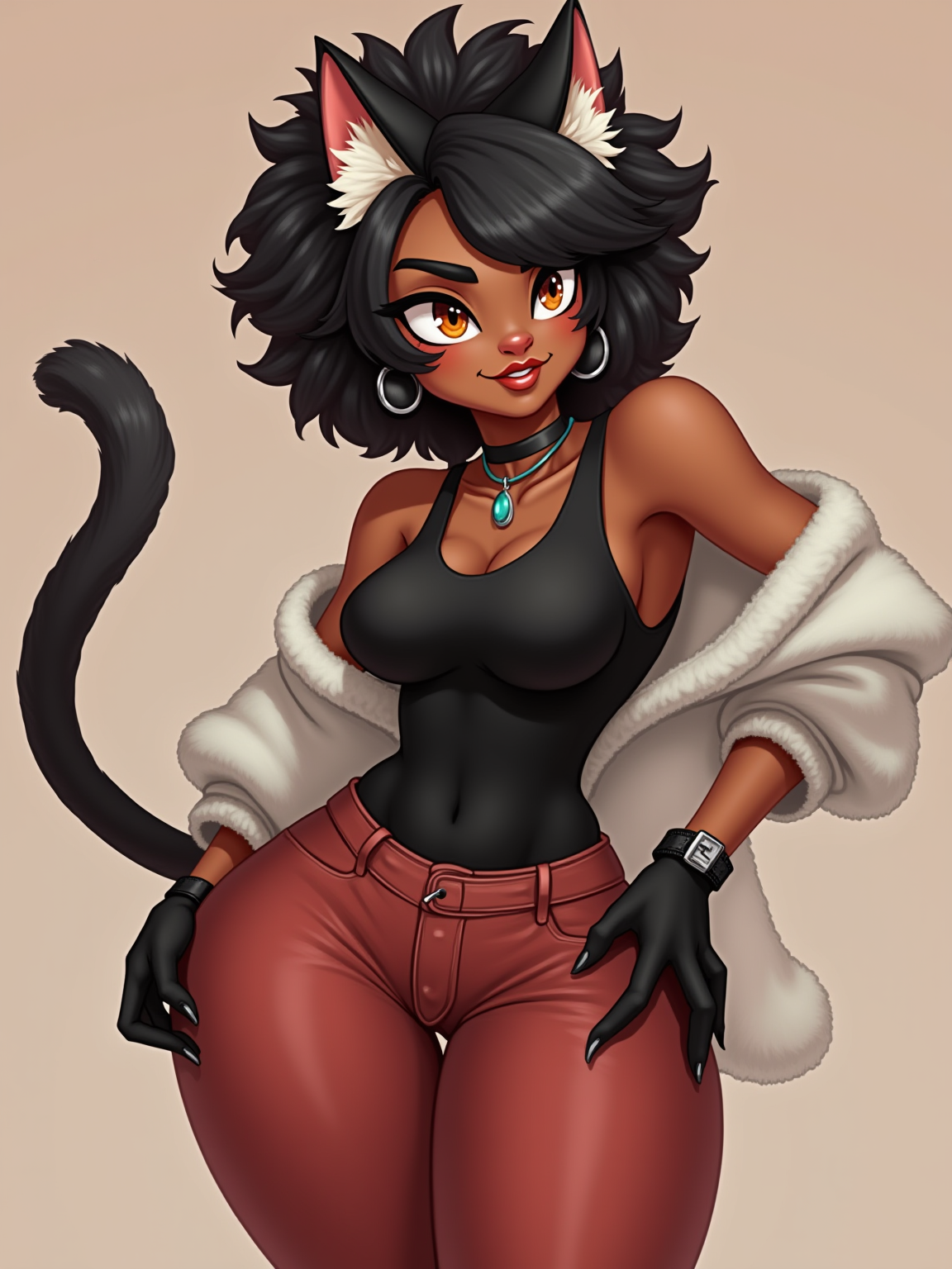 furry character of cat fursona of model with elegant feline features, soft fur, and adorable cat ears , wearing stylish casual outfit, confident expression, detailed digital furry art style, bright colors