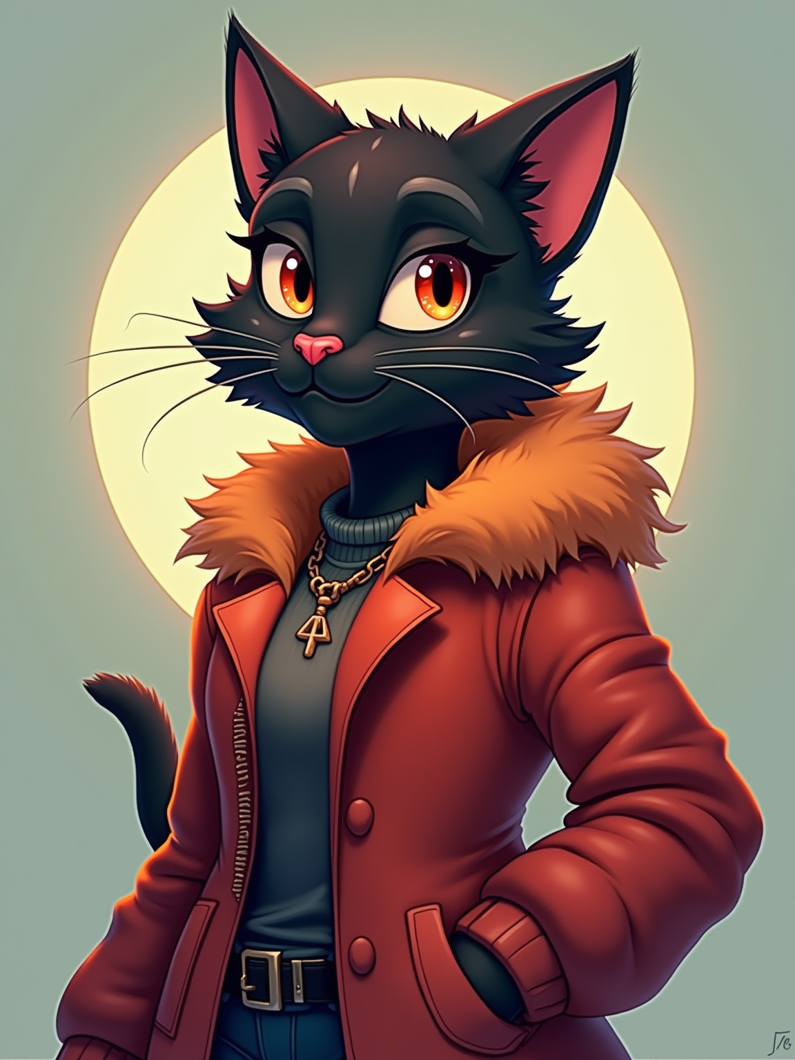 furry character of cat fursona of model with elegant feline features, soft fur, and adorable cat ears , wearing stylish casual outfit, confident expression, detailed digital furry art style, bright colors