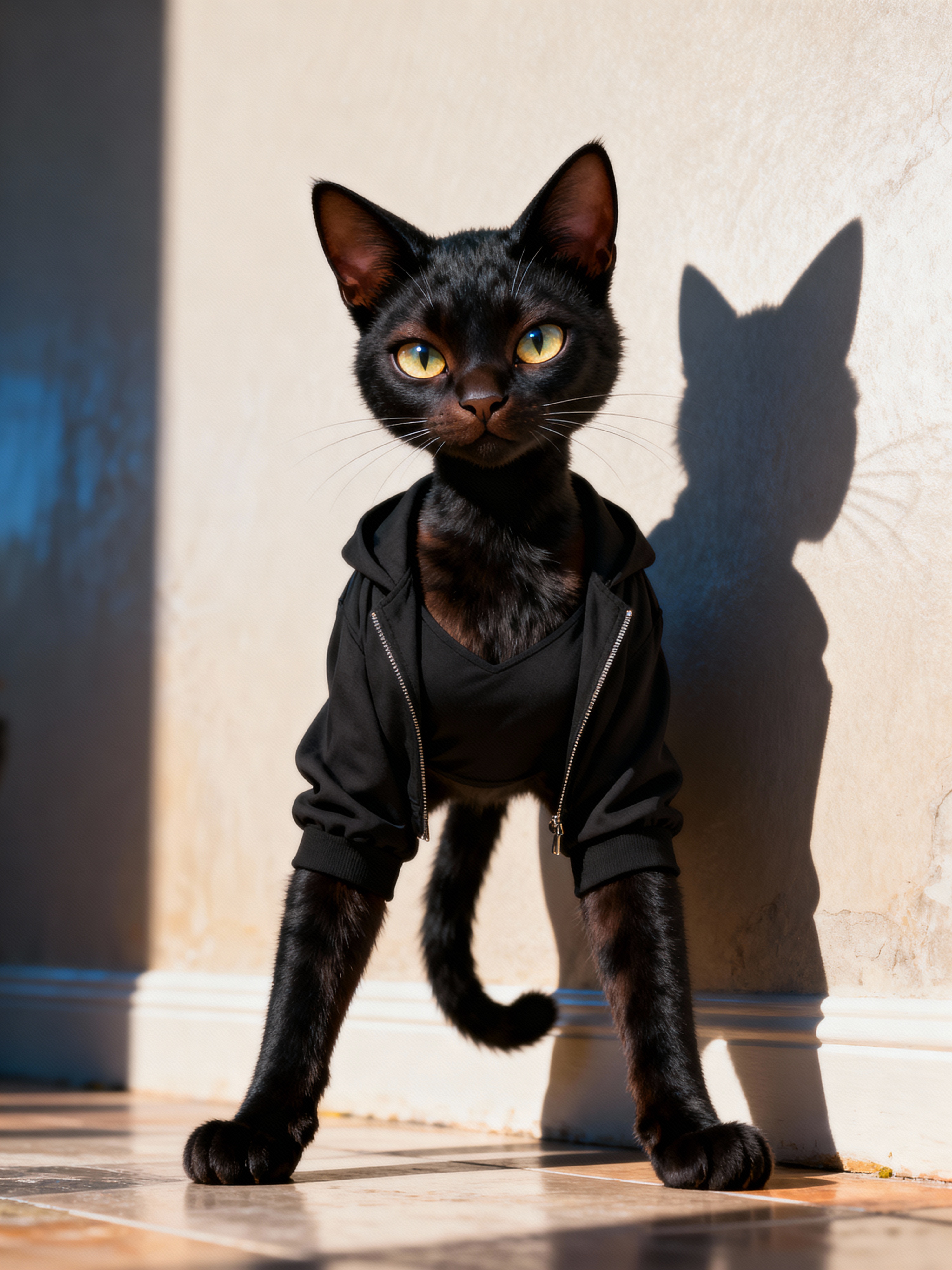 furry character of cat fursona of model with elegant feline features, soft fur, and adorable cat ears , wearing stylish casual outfit, confident expression, detailed digital furry art style, bright colors