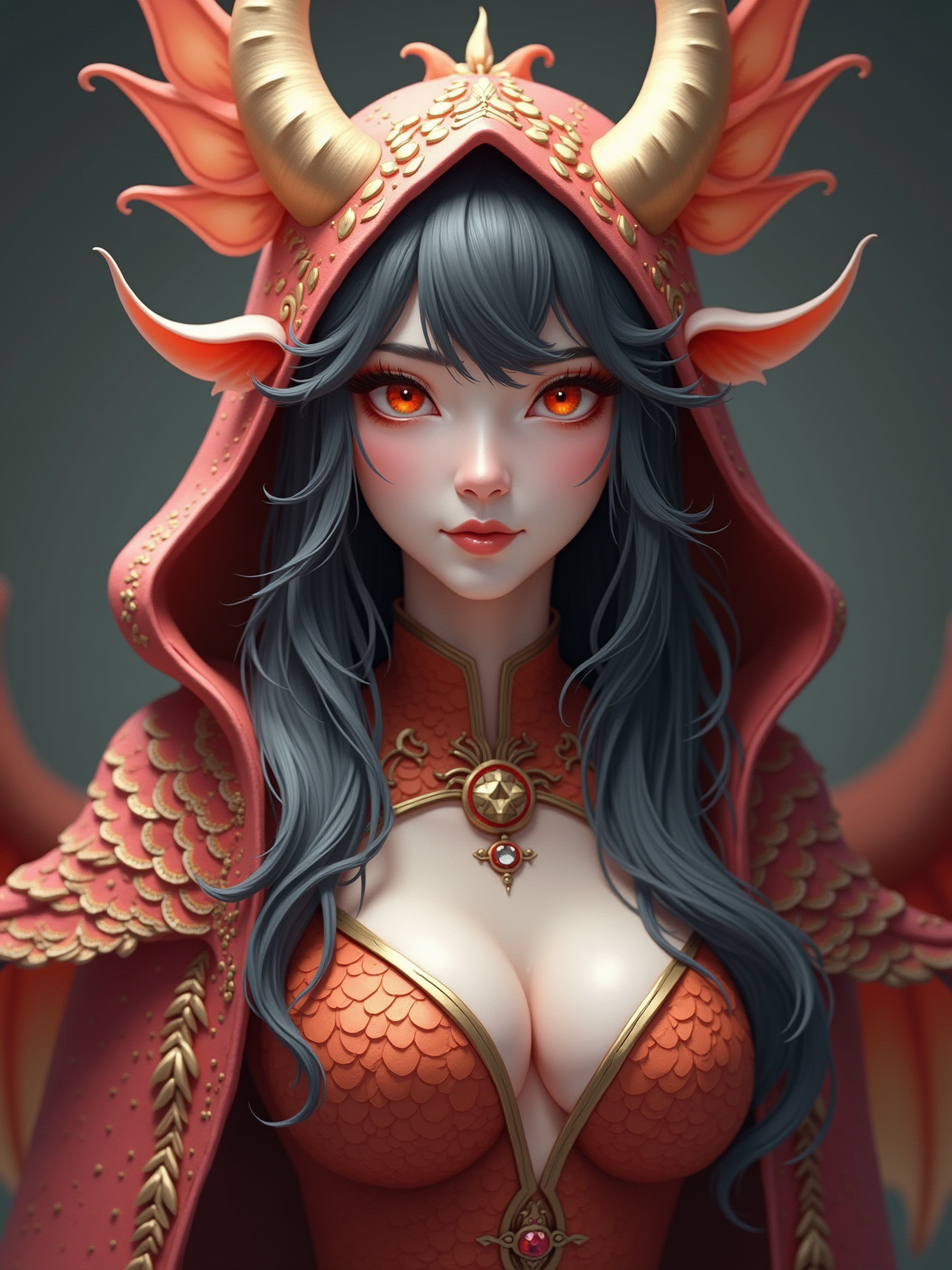 furry character of dragon fursona of model with graceful dragon features, scaled skin, small horns, and elegant wings , wearing fantasy-inspired clothing, majestic expression, detailed digital furry art style