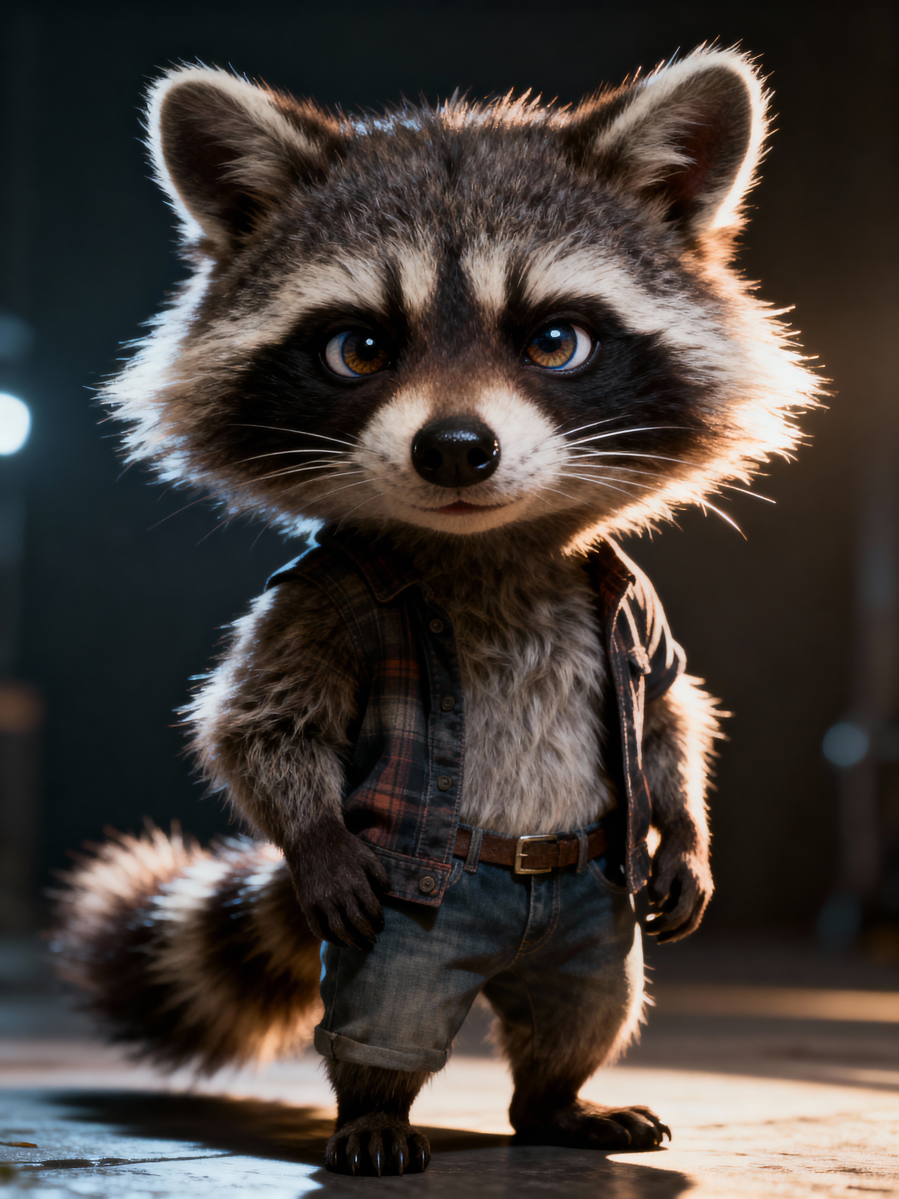 furry character of raccoon fursona of model with cute raccoon features, fluffy fur, and cute raccoon ears, wearing cute casual wear, cute expression, detailed digital furry art style
