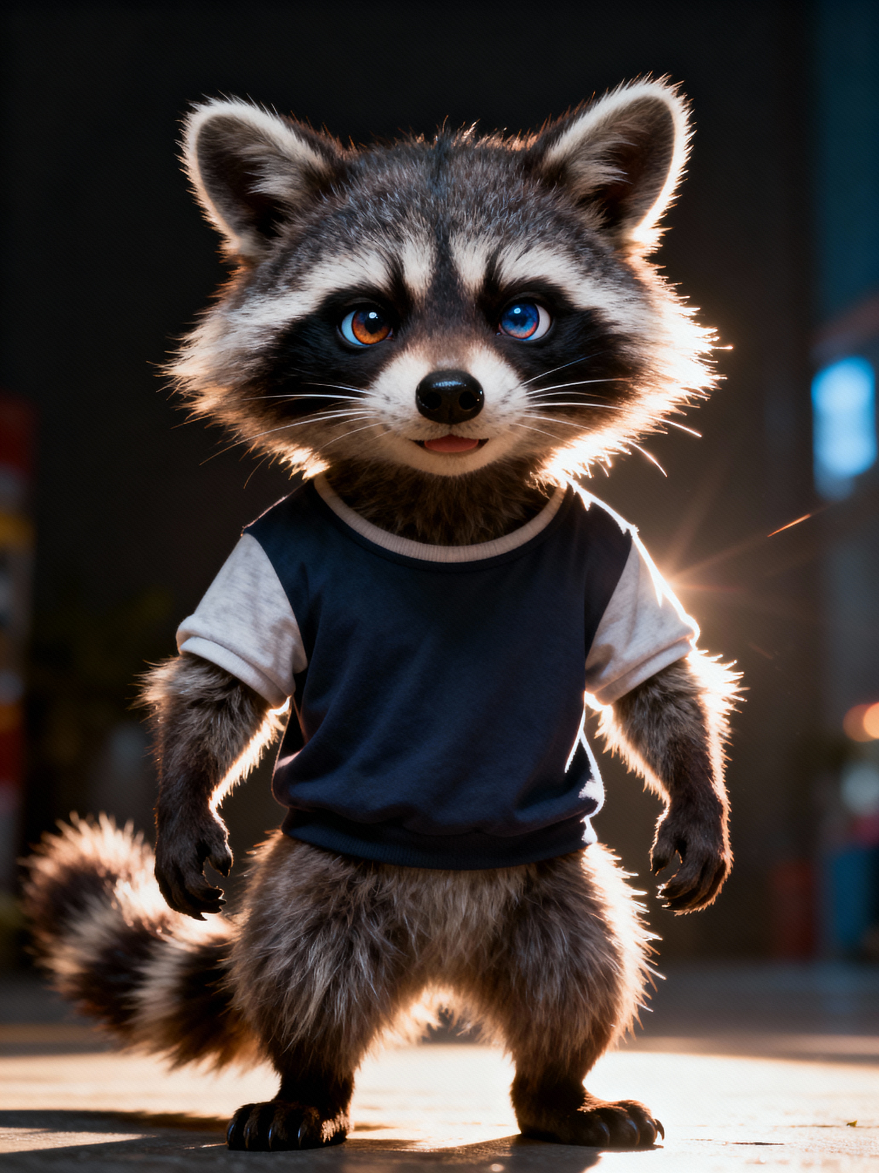 furry character of raccoon fursona of model with cute raccoon features, fluffy fur, and cute raccoon ears, wearing cute casual wear, cute expression, detailed digital furry art style