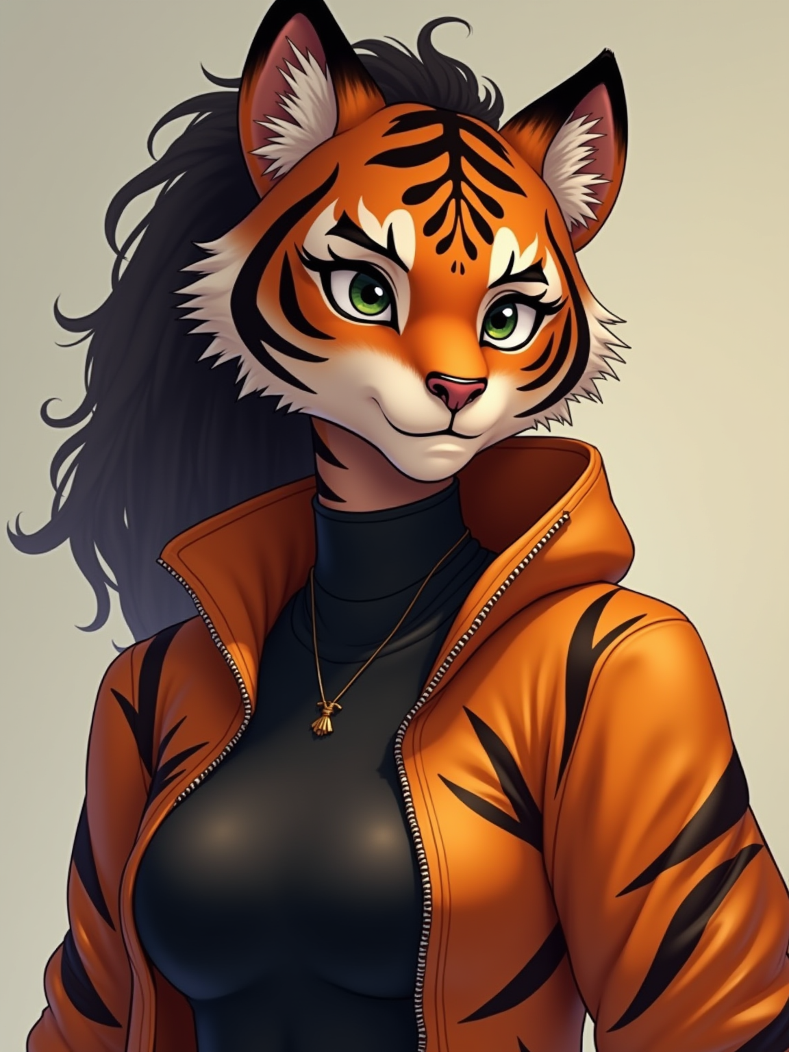 furry character of tiger fursona of model with elegant tiger features, orange and black striped fur, and rounded ears , wearing athletic wear, determined expression, detailed digital furry art style