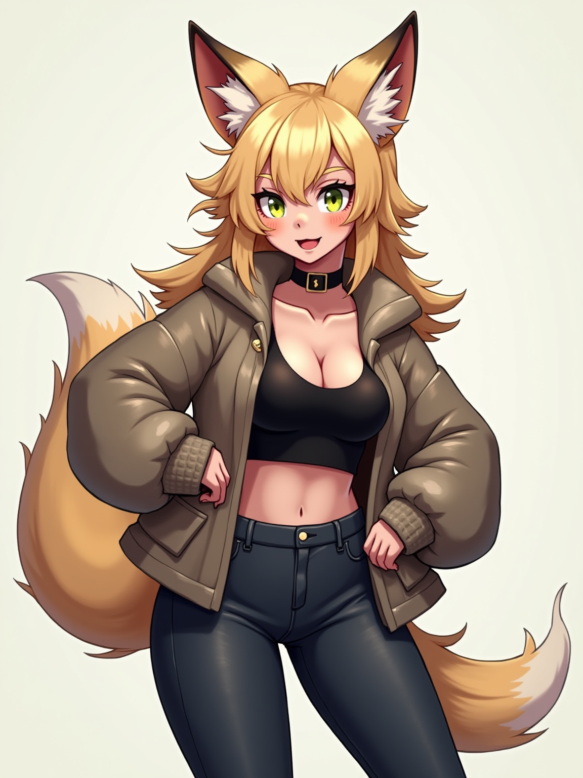 furry character of wolf fursona of model with feminine features, flowing fur, and elegant wolf ears , wearing casual modern clothing, friendly expression, detailed digital furry art style, vibrant colors