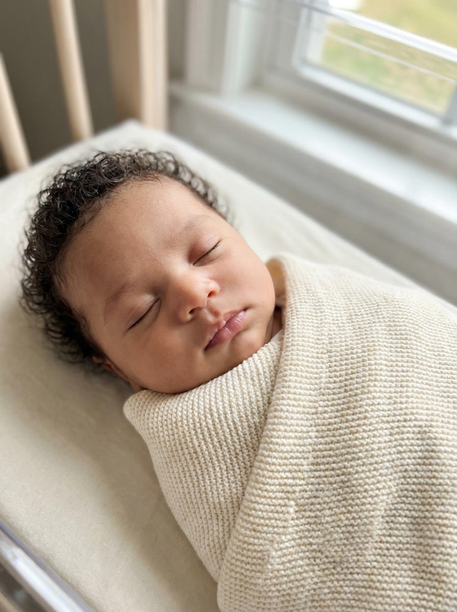 generate a close up of a baby how it would look if mans had a baby, adorable infant face with mixed features, soft baby skin, bright curious eyes, peaceful sleeping expression, natural lighting