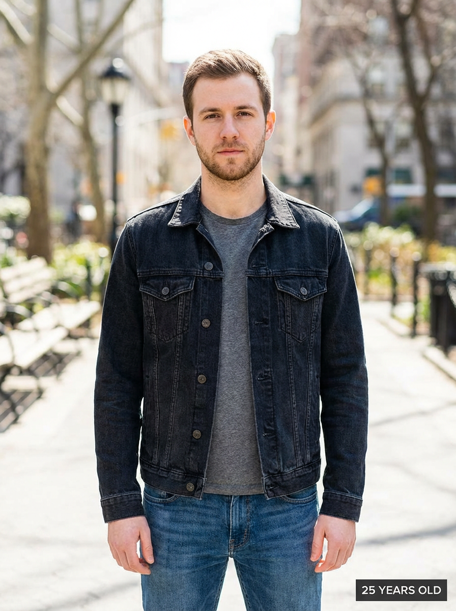 generate model at age 25, add age label in bottom right 25 years old