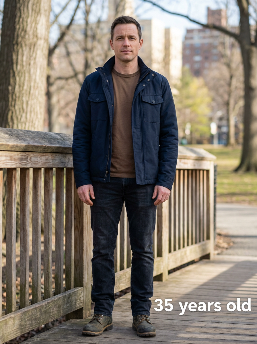 generate model at age 35, add age label in bottom right 35 years old