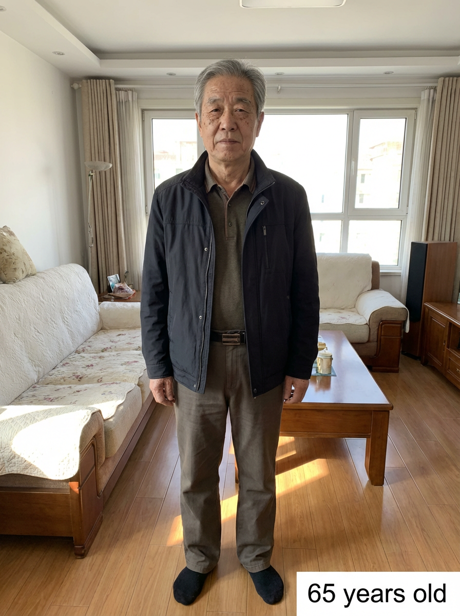 generate model at age 65, add age label in bottom right 65 years old