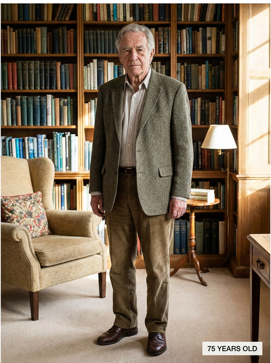 generate model at age 75, add age label in bottom right 75 years old