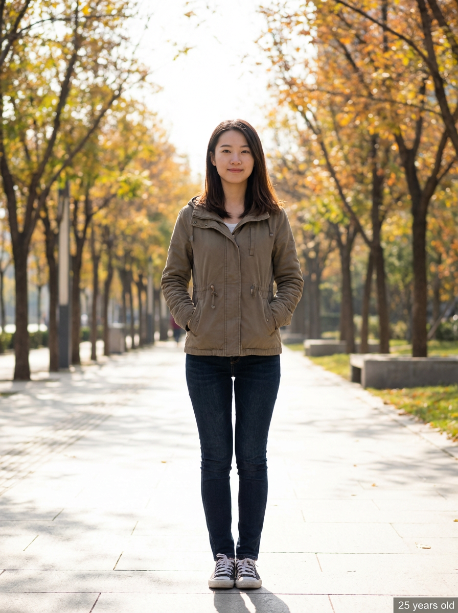 generate model at age 25, add age label in bottom right 25 years old