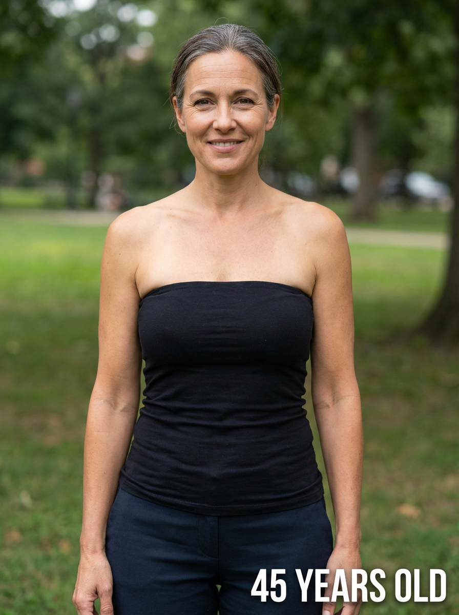 generate model at age 45, add age label in bottom right 45 years old