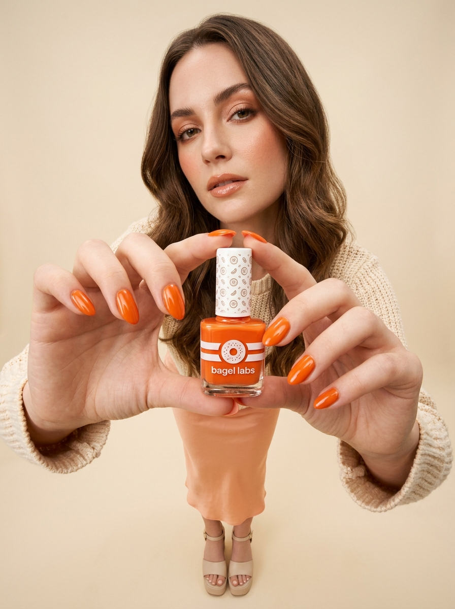 {"generation_request": {"meta_data": {"tool": "NanoBanana Pro", "task_type": "photorealistic_product_beauty_macro", "version": "v1.0", "priority": "high"}, "references": {"female_reference_image": "UPLOAD_FEMALE_REFERENCE (REQUIRED)", "pose_style_reference_image": "UPLOAD_THIS_IMAGE_AS_STYLE_REFERENCE (OPTIONAL)", "reference_rules": {"preserve_uploaded_character_identities": true, "identity_lock_strength": 0.99, "strict_face_match": true, "same_pose_same_framing": true, "do_not_copy_any_unprovided_identity": true}}, "output_settings": {"aspect_ratio": "3:4", "orientation": "portrait", "resolution": "ultra_high_res", "render_style": "photorealistic_editorial_beauty_macro", "sharpness": "high", "film_grain": "none_or_very_subtle"}, "creative_prompt": {"scene_summary": "Ultra photoreal editorial beauty macro shot. a model holds a nail polish bottle extremely close to the camera with dramatic perspective. The bottle is the main focus (tack sharp), while the face is softly out of focus behind it. seamless background. Keep the same composition and hand-to-camera product framing as the reference image.", "environment": {"setting": "studio", "background": "pure seamless backdrop", "lighting": "clean high-key studio lighting, soft shadows, crisp specular highlights on glass and nails"}, "camera": {"type": "beauty macro / close-up product shot", "lens_look": "wide-close macro perspective (24-35mm equivalent feel), dramatic foreshortening", "focus": "product label and bottle edges tack sharp; face slightly soft bokeh", "aperture": "f2.0_to_f2.8", "do_not_crop": "keep full bottle and readable"}, "subject": {"type": "young_adult_woman", "identity": "MUST match uploaded model reference exactly", "hair": {"style": "open_long_wavy", "volume": "high_volume_bouncy_waves", "finish": "glossy_healthy"}, "makeup": {"theme": "orange_peachy_editorial", "skin": "real_skin_texture_visible_pores_no_blur", "eyes": "soft_warm_brown_liner + subtle_shimmer_orange_peach_lid", "cheeks": "peach_blush", "lips": "warm_nude_peach_or_soft_orange_gloss", "overall": "very_beautiful_alluring_high_fashion ( changing facial structure)"} , "expression": "confident_sultry_soft_gaze"}, "hands_and_nails": {"pose": "same as reference: both hands framing and holding the bottle close to lens", "nails": {"shape": "almond", "color": "vivid_orange_match_product", "finish": "glossy"}, "anatomy_rules": "perfect hands, five fingers each, no warping, no fused fingers"}, "product_design": {"object": "nail_polish_bottle", "bottle_material": "clear_glass_with_realistic_refraction", "polish_color": "vivid_orange", "label_design": {"base": "clean_modern", "pattern": "white_stripes_on_orange_theme (orange + striped design cues)", "logo": "Bagel symbol placed prominently on the front label", "brand_text": "BAGEL LABS (exact text) printed clearly on the bottle label", "print_rules": "text must be crisp, aligned, not warped, no gibberish letters"}, "cap_design": {hair, "pattern": "tiny repeating bagel icons/pattern all around the cap (mini bagel motifs), subtle and cute, not messy", "no_extra_branding": "only the mini bagel pattern, no additional random text"}}, "quality_rules": ["ultra realistic skin texture (no plastic smoothing)", "natural eye catchlights", "no extra people", "no extra objects", "no watermark, no UI", "product label must be readable and correct: Bagel symbol + 'Bagel Labs'", "true-to-life glass highlights and reflections", "high-end magazine beauty advertising look"]}, "negative_prompt": ["text outside the product label", "watermark", "logo errors", "misspelled words", "gibberish typography", "extra people", "extra hands", "extra fingers", "warped hands", "deformed nails", "blurred product label", "low resolution", "plastic skin", "over smoothing", "face drift", "identity change", "cartoon", "cgi"]}}