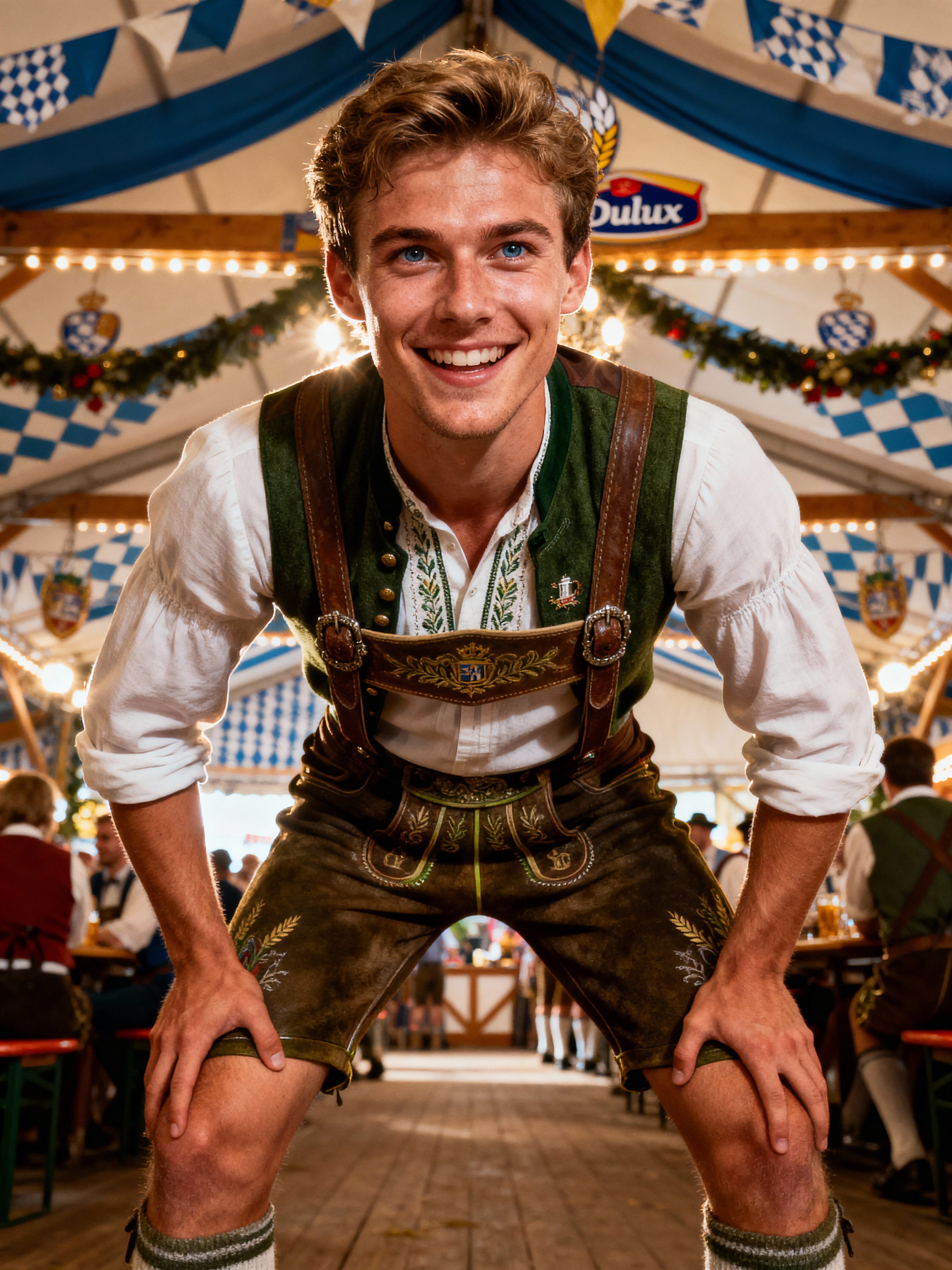 happy model in Lederhosen for Oktoberfest at Oktoberfest