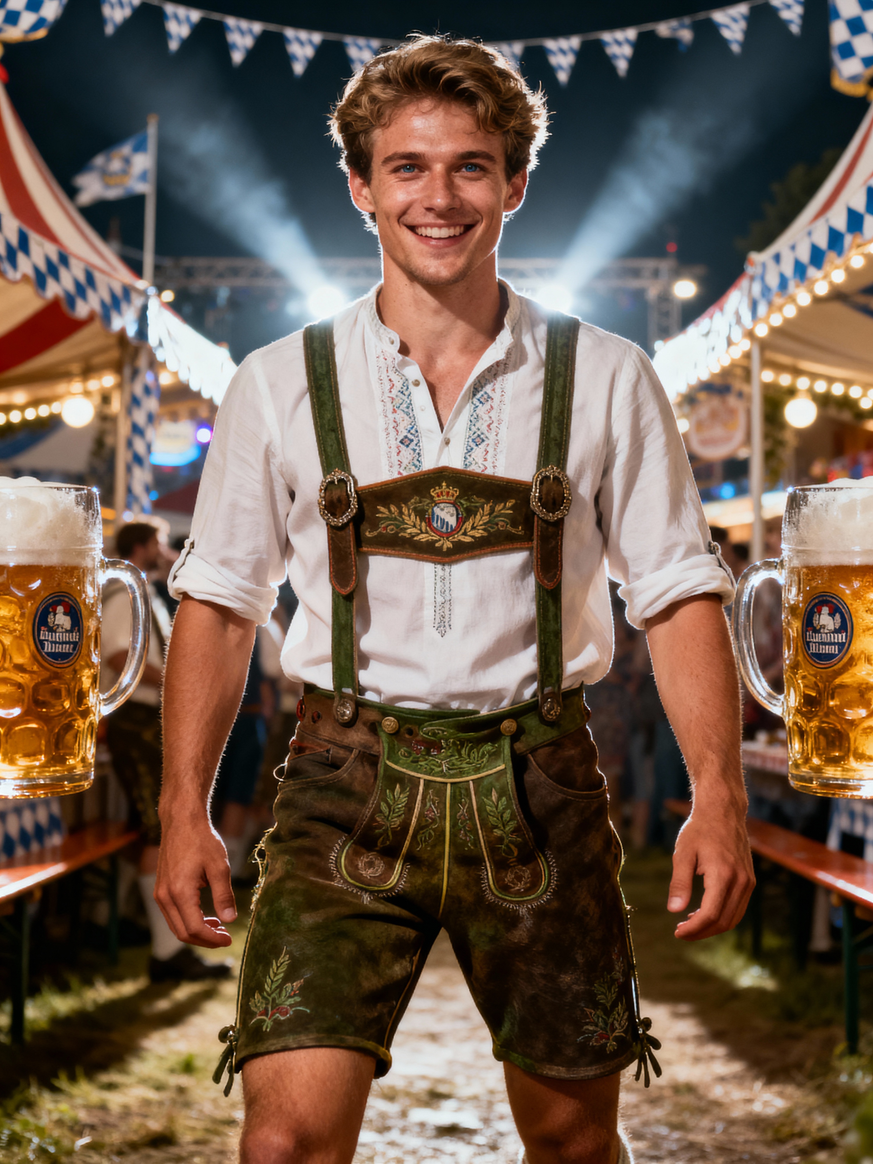 happy model in Lederhosen for Oktoberfest at Oktoberfest