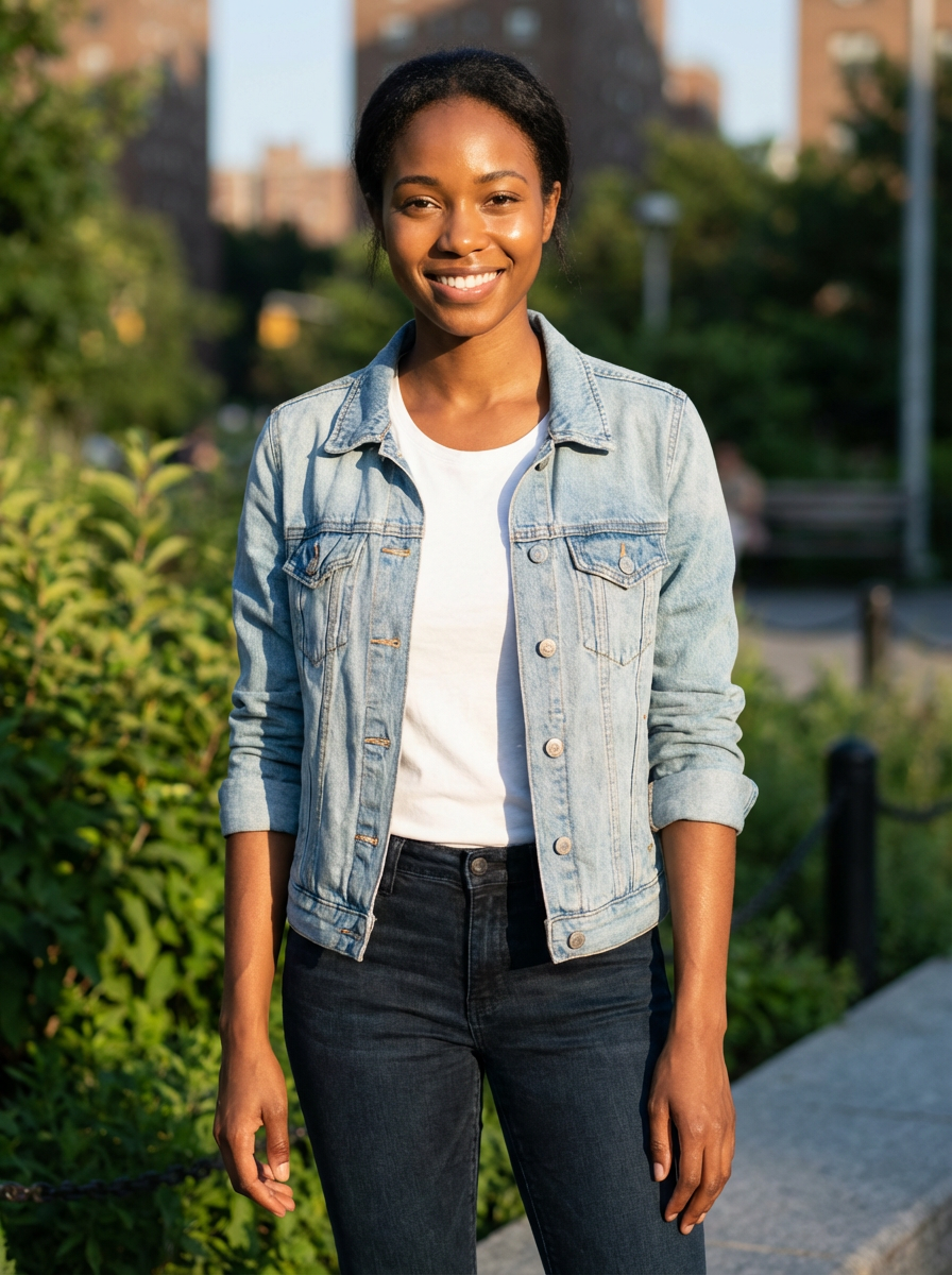 healthy glowing model, radiant skin, slim arms , natural lighting, casual outfit