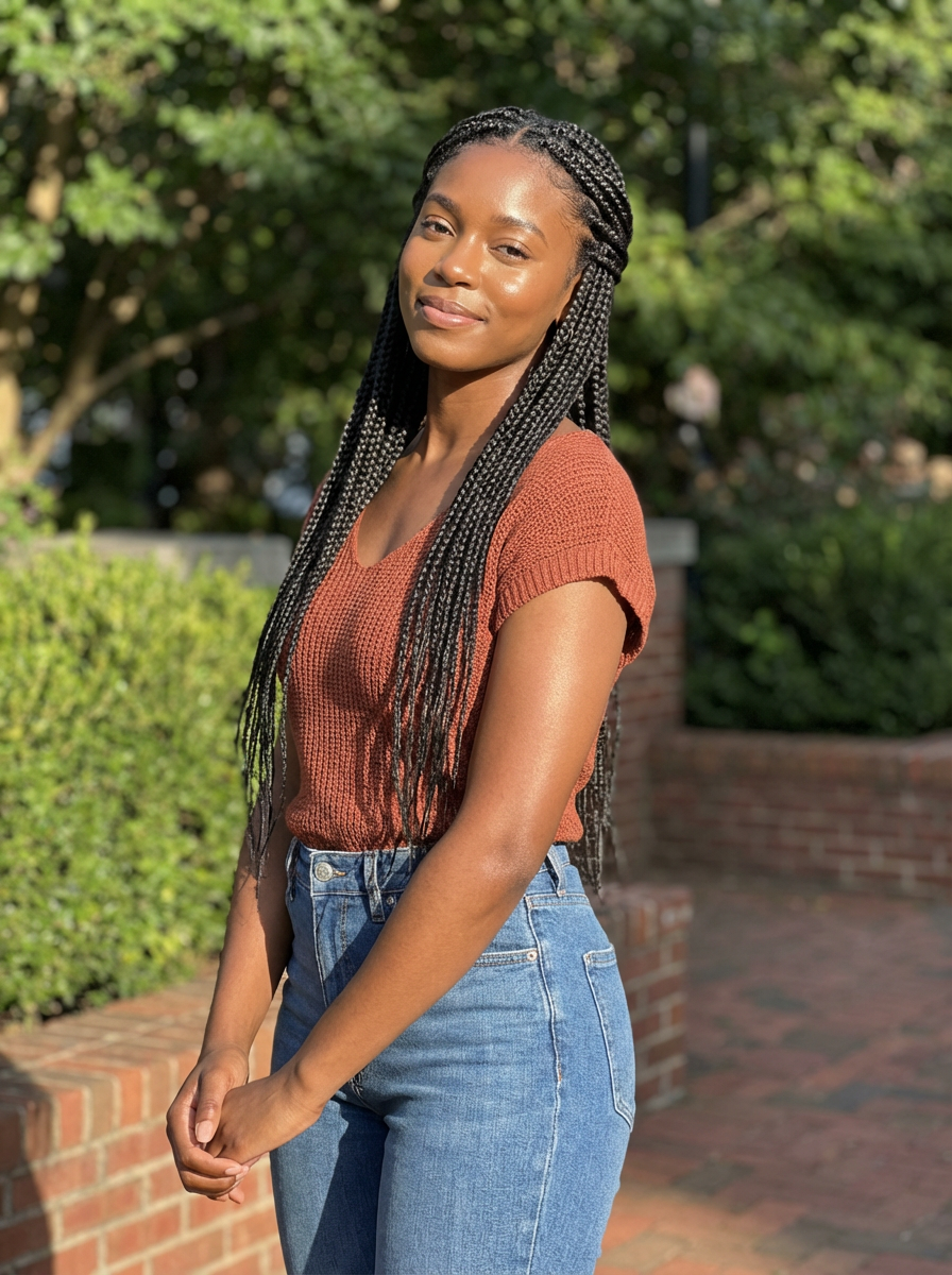 healthy glowing model, radiant skin, slim arms , natural lighting, casual outfit