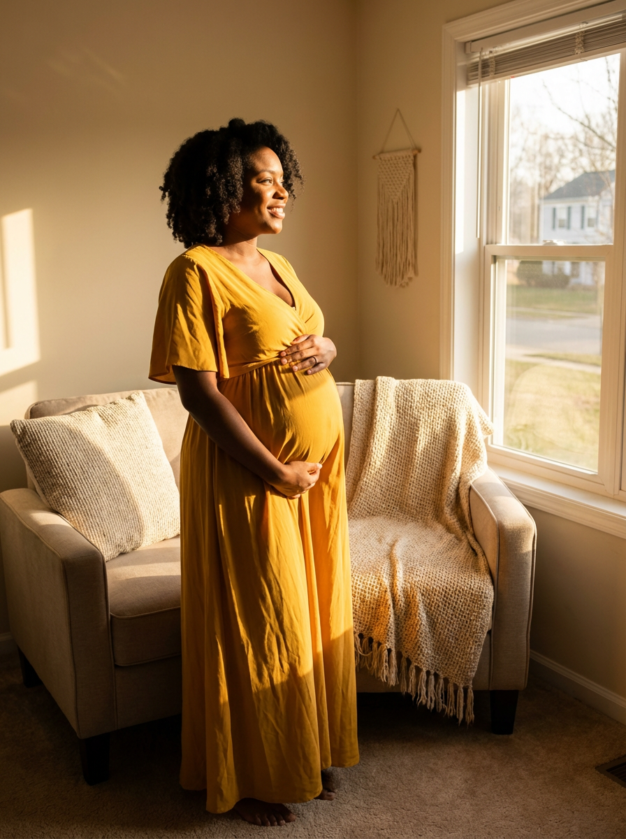 healthy pregnant model in maternity photographs, beautiful pregnant model, maternity photography in beautiful home. golden hour