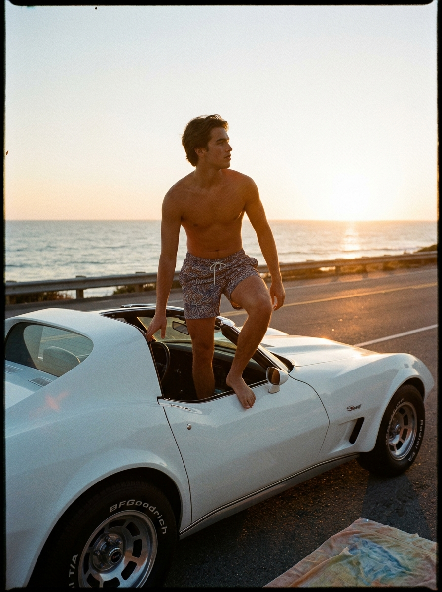 {"image_request":{"goal":"Create a nostalgic vintage 70s coastal lifestyle portrait \/ analog film aesthetic \/ summer sunset vibe \/ classic car editorial","meta":{"image_type":"Analog Film Photography \/ Vintage Lifestyle Editorial","quality":"Best Quality, Ultra-Detailed, Film Grain, Authentic Texture","color_mode":"Vintage Kodachrome \/ Warm Sunset tones with Cool Blues \/ Analog Film Scan","style_mode":"retro analog","aspect_ratio":"4:5","resolution":"1440x1920"},"creative_style":"Vintage 70s\/80s coastal lifestyle aesthetic, Kodachrome film look with authentic grain, nostalgic summer evening atmosphere, relaxed and candid energy, soft focus, retro fashion editorial","overall_theme":"nostalgic summer road trip \/ vintage car beachside \/ classic Americana \/ coastal dusk","mood_vibe":"serene confidence \/ nostalgic \/ relaxed \/ cool \/ dreamy \/ atmospheric","style_keywords":["35mm film","vintage grain","Kodachrome","C3 Corvette","golden hour","beachside","retro aesthetic","analog photography","scanned photo border"],"subject":{"count":"1","type":"model","identity":"young male model, sun-kissed, athletic muscular physique, short hair","identity_preservation":{"description":"Natural handsomeness, relaxed expression, looking off-camera","notes":"Maintain the effortless, wind-swept look"},"age_appearance":"early 20s","skin":"sun-kissed, glowing, natural texture with film grain","makeup":{"lips":"natural","eyes":"natural","general":"clean groomed skin, light stubble, fresh beach look."},"facial_features":{"expression":"contemplative, looking away to the side, serene","eyes":{"gaze":"looking to the right (his left), avoiding the camera","intensity":"soft and dreamy"}},"hair":{"length":"short","texture":"textured, beachy, wind-swept","style":"tousled","lighting_interaction":{"light":"soft sunset glow catching highlights","shadow_play":"soft shadows adding volume"}},"clothing":{"top":" chest or tank","bottom":"swim trunks","full_description":"classic swim trunks shirtless","accessories":"minimal\/none"},"props":{"car":"Vintage C3 Corvette (shark body), open driver's door, T-top removed","details":"BFGoodrich Radial T\/A letter tires , retro wheel rims","other":"Vintage racing jacket or towel resting on the door sill"}},"pose_action":{"description":"Standing inside the open door frame of the car, elevated position","overall_pose":"Standing tall in the car door opening, rising out of the seat","head_turn":"Turned to the side (profile view)","gaze":"Looking out toward the horizon\/sunset","hands":"Resting on the car's roof frame\/windshield bar for support","body_position":"Frontal to camera but head turned, standing on the door sill or seat area."},"environment":{"setting":"Coastal road or beachside parking","location":"Overlooking the ocean","weather":"Clear evening, twilight","time_of_day":"Dusk \/ Blue Hour transition \/ Late Golden Hour","atmosphere":"Calm, breezy, saline, nostalgic summer evening"},"background":{"color":"Deep ocean blues, soft purple\/pink sky gradient","effect":"Soft focus ocean horizon, textured water surface"},"lighting":{"type":"Natural soft light","direction":"Side lighting (sunset)","intensity":"Soft, diffused","tone":"Warm highlights on skin, cool ambient shadows","mood":"Romantic, nostalgic, serene","imperfections":["film grain","soft focus","slight vignette","color shift"]},"camera":{"sensor_format":"35mm Analog Film","lens":"50mm prime","position_angle":"Eye-level or slightly low angle","distance":"Medium shot (knees up)","framing":"Centered subject, car framing the bottom and sides","depth_of_field":"Moderate (subject sharp, background slightly softened)"},"color_grading":{"palette":"White (car, swim trunks), Tan (skin), Deep Blue (ocean), Soft Pink\/Purple (sky)","lut":"Vintage Kodachrome \/ Fujifilm Superia emulation","mood":"Retro summer nostalgia"},"post_processing":{"sharpening":"Soft analog sharpness","final_touch":"Add rough photo border\/frame, heavy film grain, slight fade in blacks."},"negative":{"style":"digital, polished, 3d render, cartoon, plastic, over-saturated, hdr","content":"closed door, modern car, crowded background, direct eye contact"},"additional_controls":{"focus_emphasis":"Subject and the vintage car door","special_notes":"Ensure the 'BFGoodrich' text on the tire is legible to ground the vintage feel. The image should look like a scanned photo from the late 70s or early 80s.","vibe":"Old money aesthetic, vintage summer","final_output_goal":"A convincing vintage photograph scan"}}}