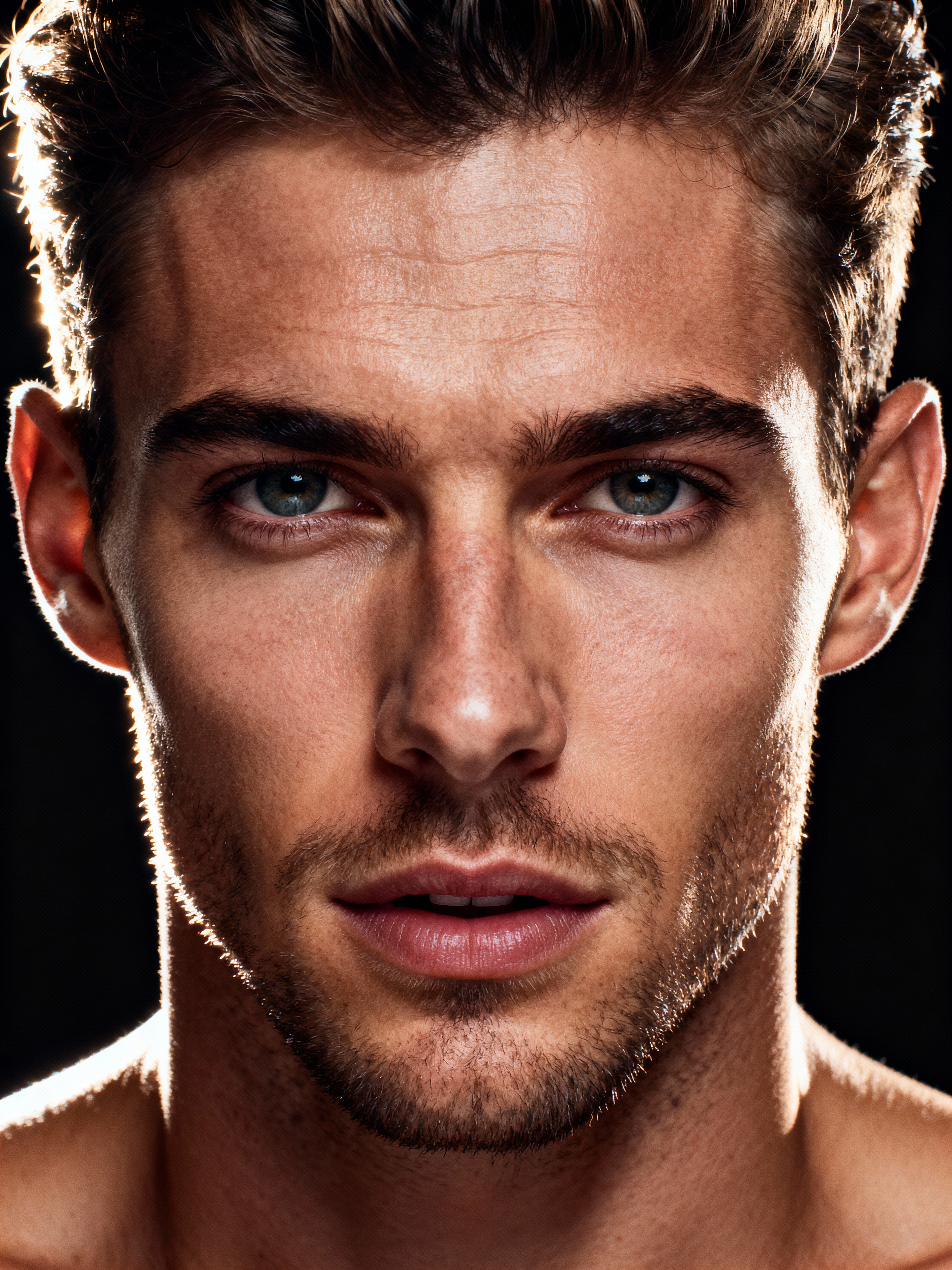 insanely beautiful model in a beauty campaign. Groomed appearance, strong features. Clean studio lighting, beauty photography.