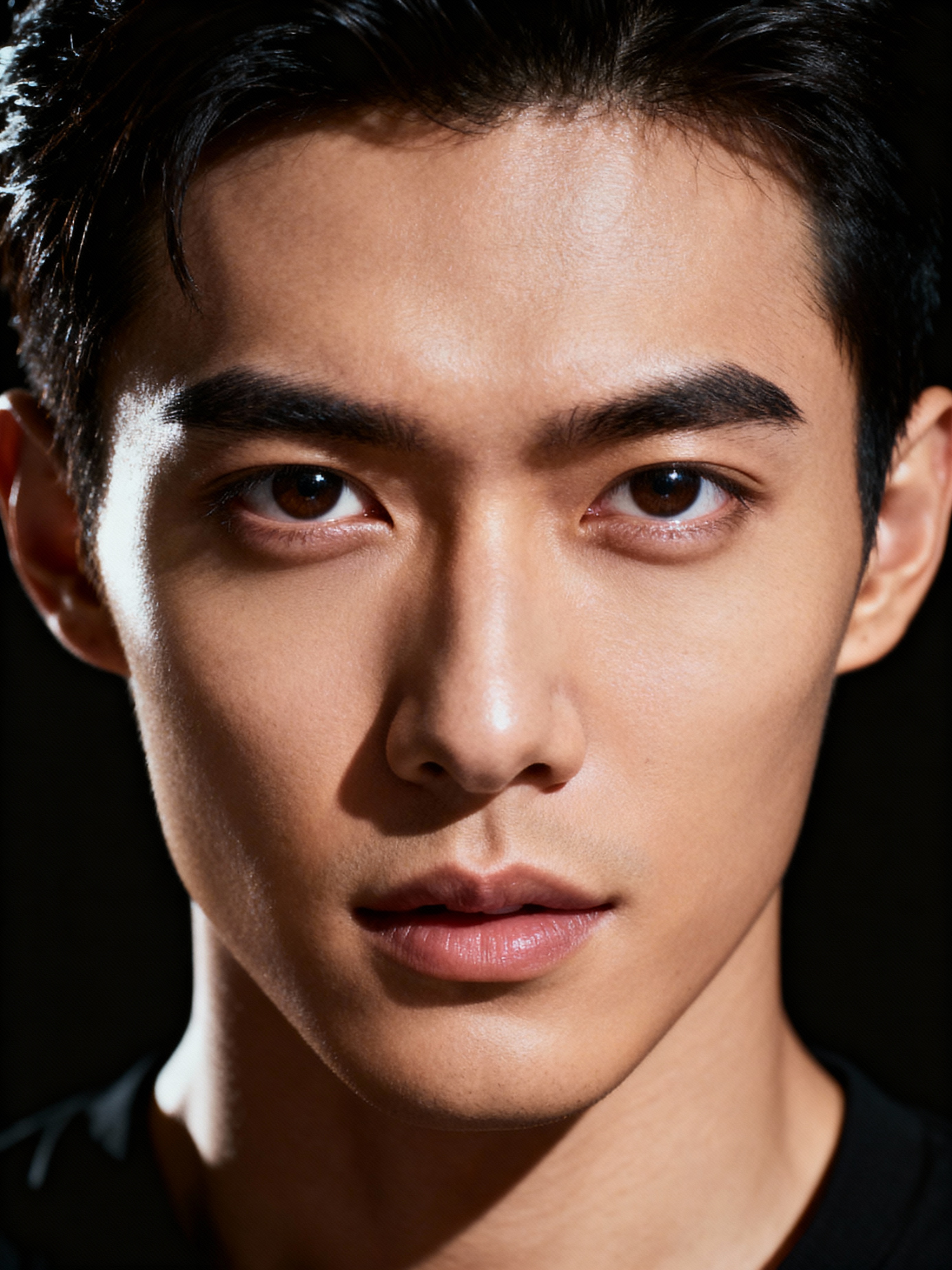 insanely beautiful model in a beauty campaign. Groomed appearance, strong features. Clean studio lighting, beauty photography.