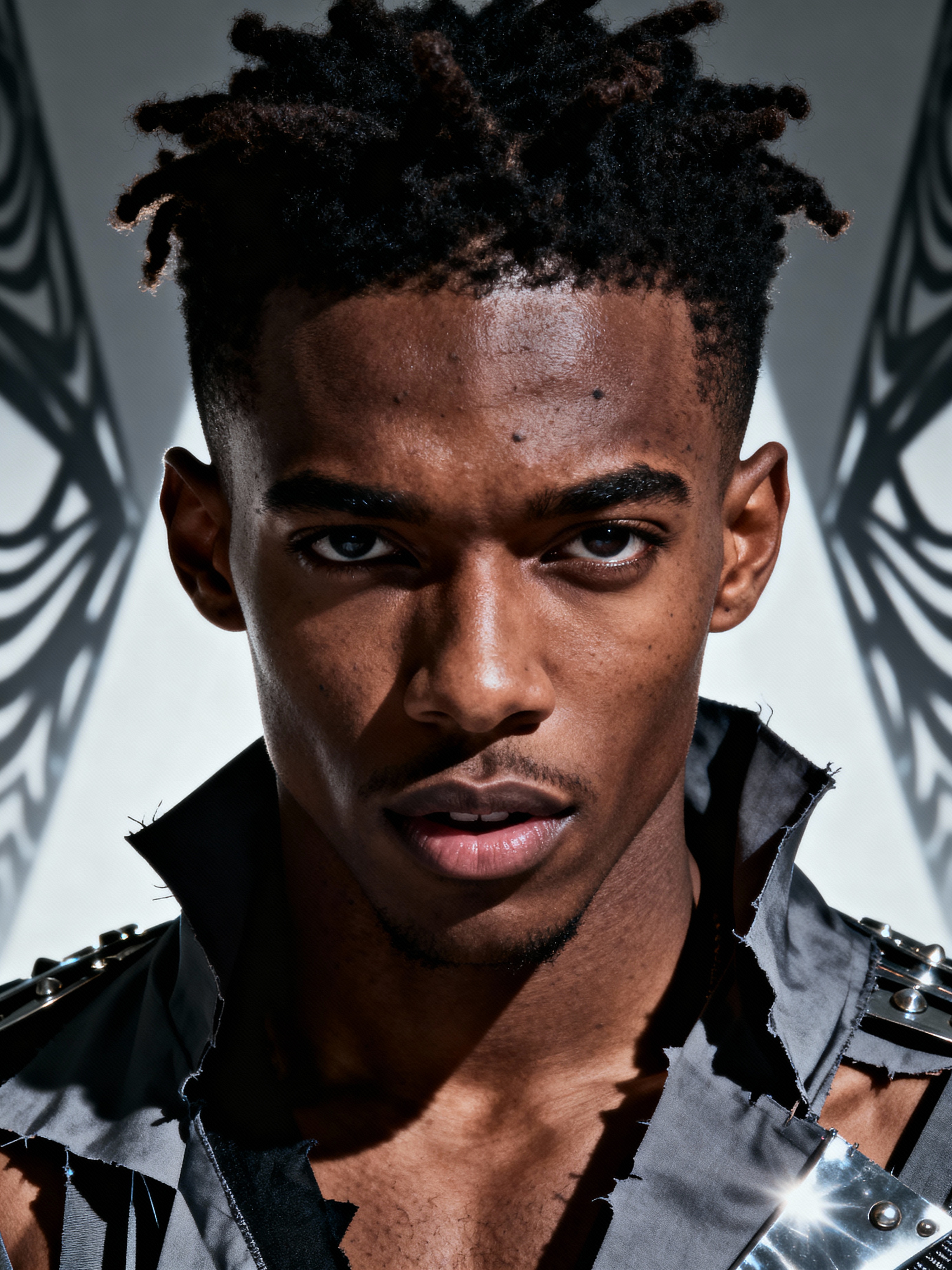insanely beautiful model in a creative fashion editorial. Wearing creative fashion, dynamic expression. Artistic lighting, fashion magazine style.