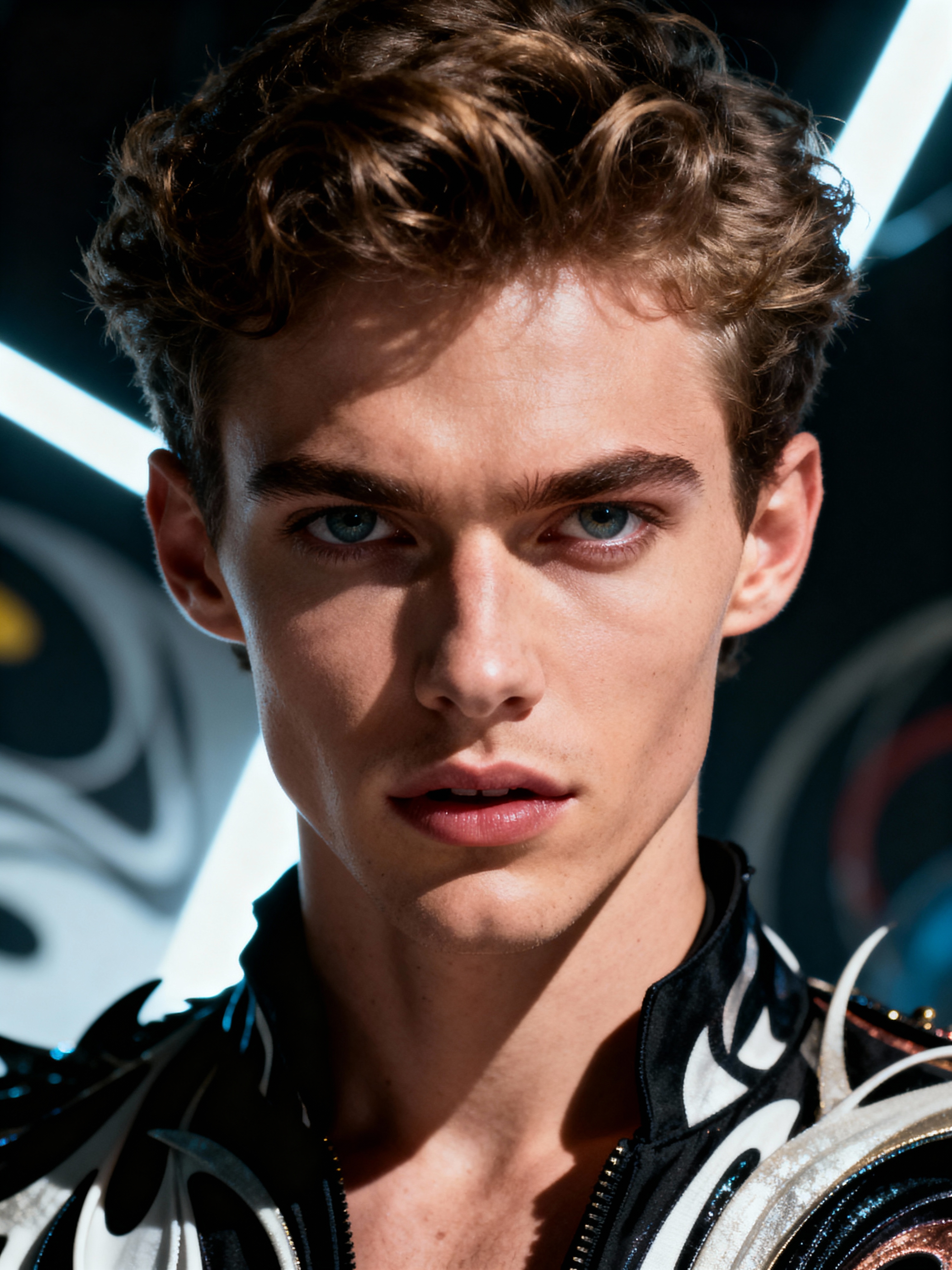 insanely beautiful model in a creative fashion editorial. Wearing creative fashion, dynamic expression. Artistic lighting, fashion magazine style.