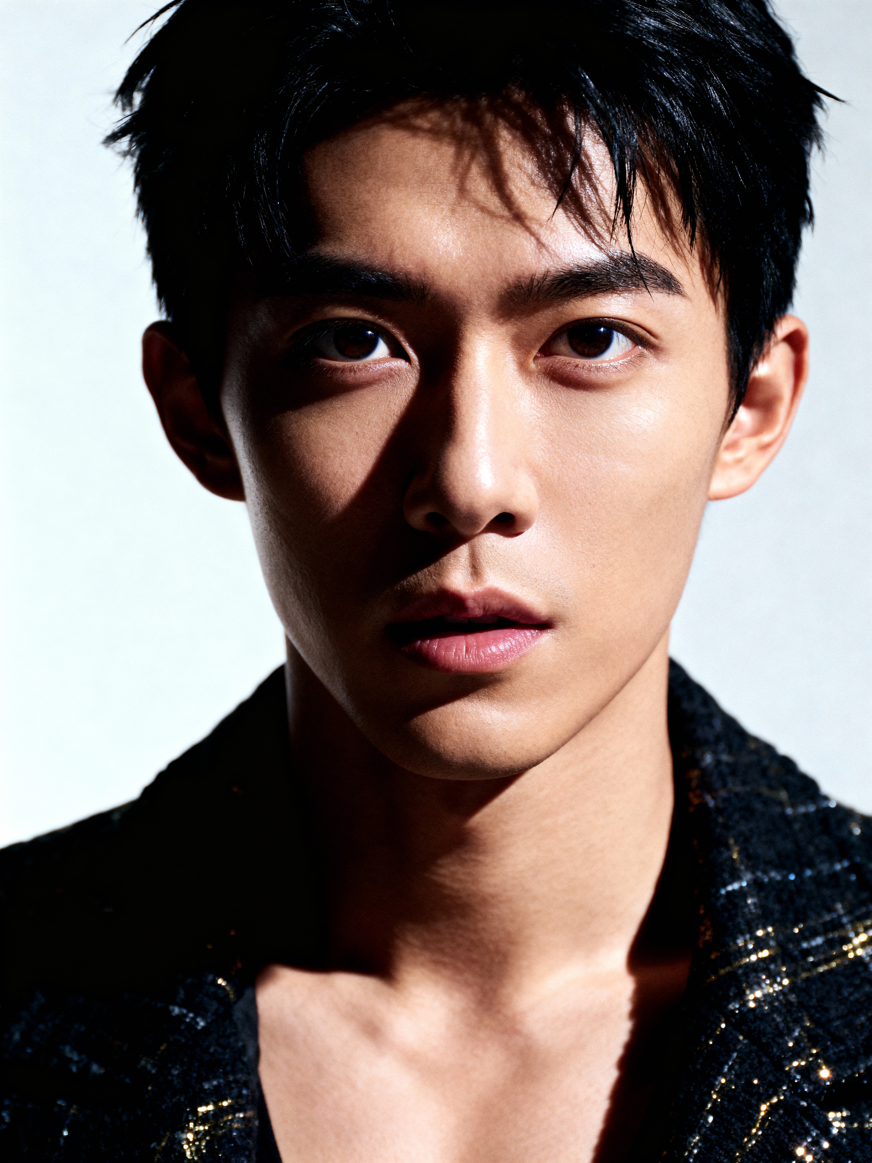 insanely beautiful model in a creative fashion editorial. Wearing creative fashion, dynamic expression. Artistic lighting, fashion magazine style.