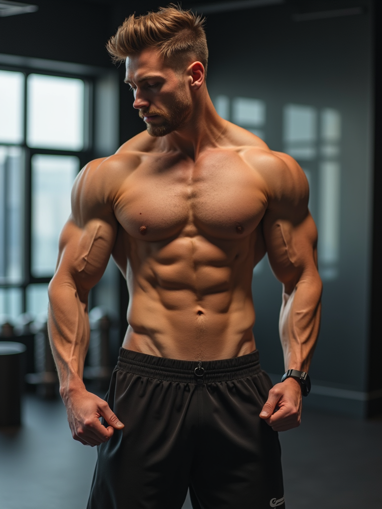 insanely beautiful model in a fitness campaign. Wearing luxury sportswear, dynamic stance. Modern gym setting, fitness photography.
